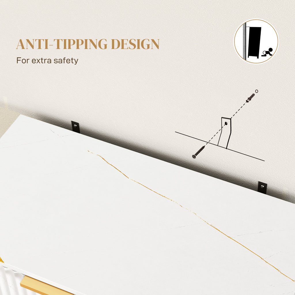 Add a soft touch of elegant texture into the bedroom and beyond, thanks to this HOMCOM sideboard. With two shelves, there's two compartments for keeping tableware, dining accessories and more - with a handy three-level adjustable shelf to fit in smaller and larger items. Made from a particle board and MDF blend for durability, finished with metal legs for support.