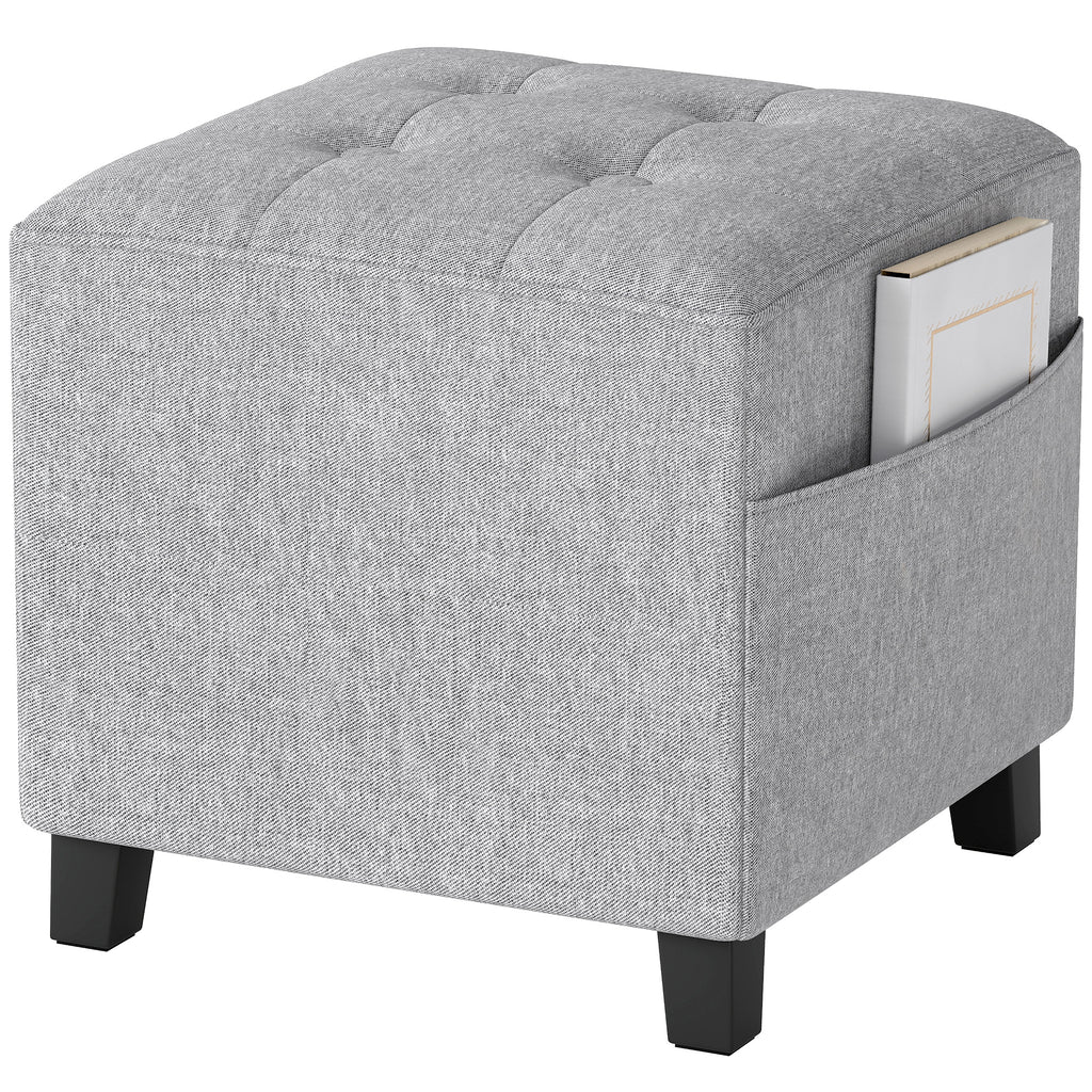 Discover the charm of the storage footstool from HOMCOM, a delightfully compact and lightweight pouffe stool that's a breeze to move around. Featuring a handy side pocket and wrapped in breathable linen-look fabric, this ottoman with storage offers both comfort and convenience. Four rubber wood legs equipped with anti-slip foot pads ensure stability and care for your floors. Great for resting your feet or as an extra seat.