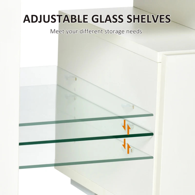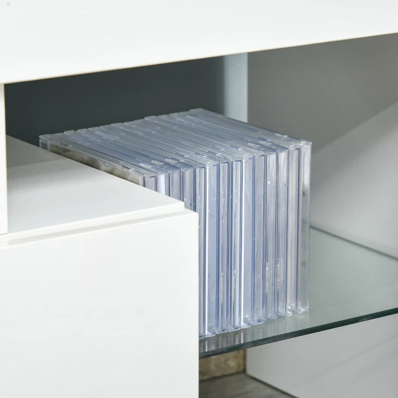 Take your living room into a future dimension with this TV unit from HOMCOM. The design blends a bottom storage cabinet with a long top platform connected in the middle. A lighting panel is placed underneath the top piece - 16 different colours with four different modes for a cool atmosphere in the evenings and nights. Made from a particle and MDF blend, this media console is solid. This media console is totally a perfect gathering piece and anchor for your living space!