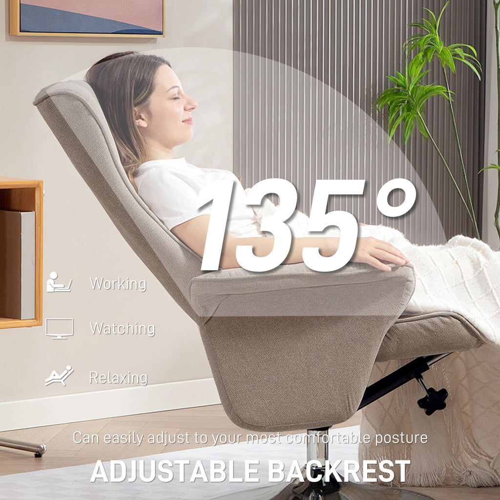 HOMCOM Upholstered Swivel Recliner Armchair with Ottoman, Beige