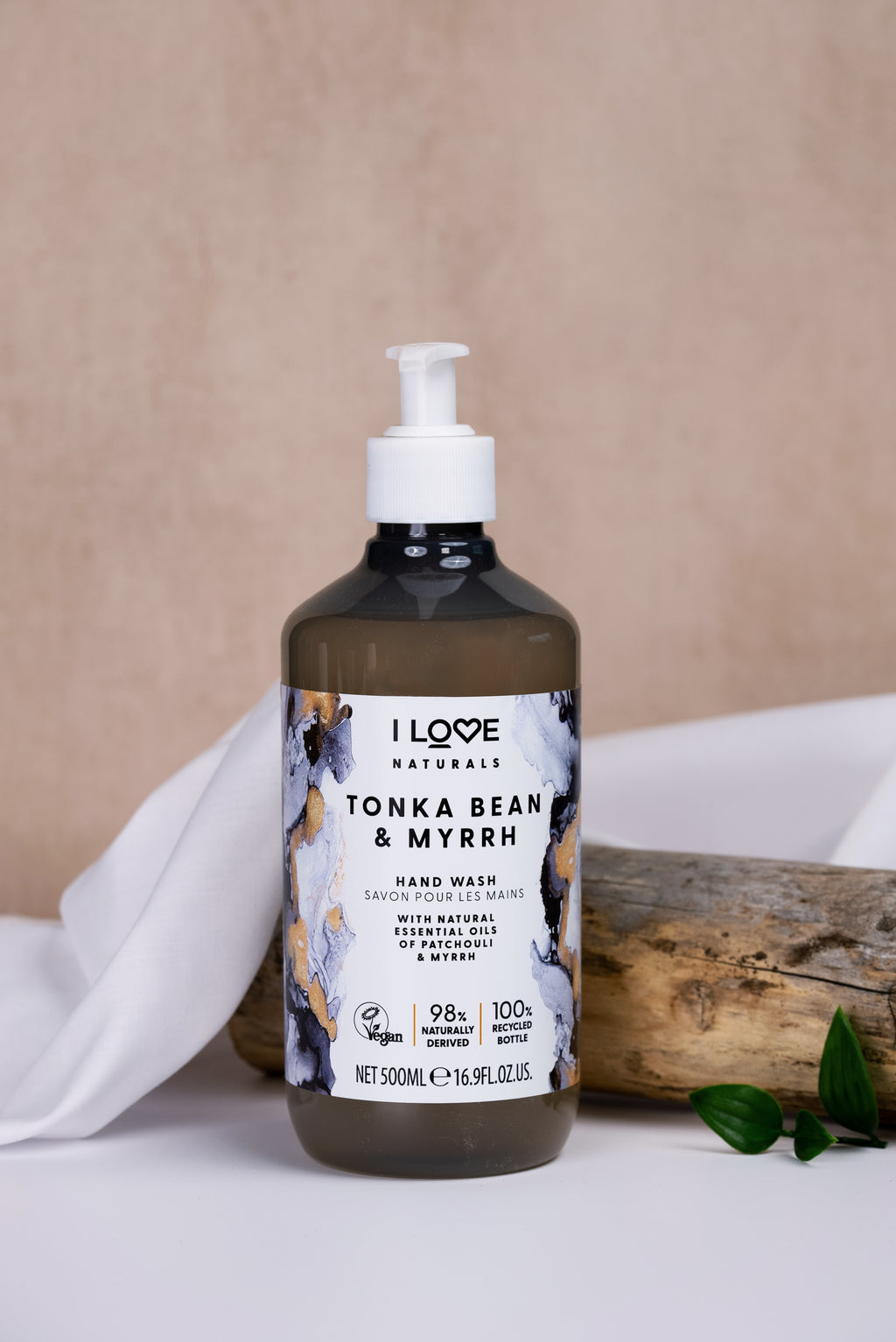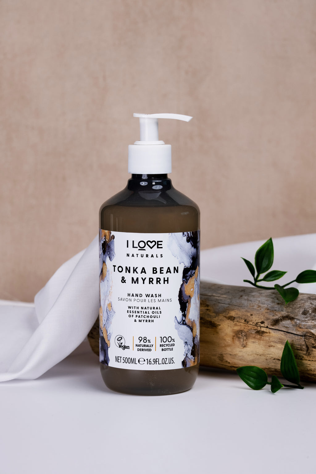 Cleanse and nourish your hands with the I LOVE Naturals Hand Wash. Inspired by nature, it has been expertly formulated using plant-based cleansers, Pro Vitamin B5 and infused with patchouli, myrrh, and cinnamon bark essential oils. The moisturising, luxurious lather gently removes impurities, without drying the skin, to leave it feeling refreshed, moisturised, silky smooth and elegantly scented.