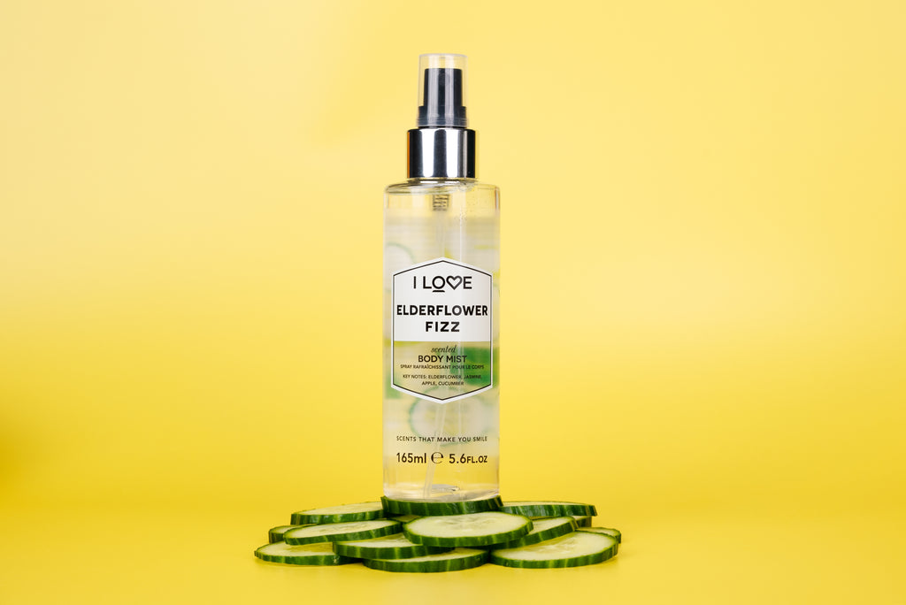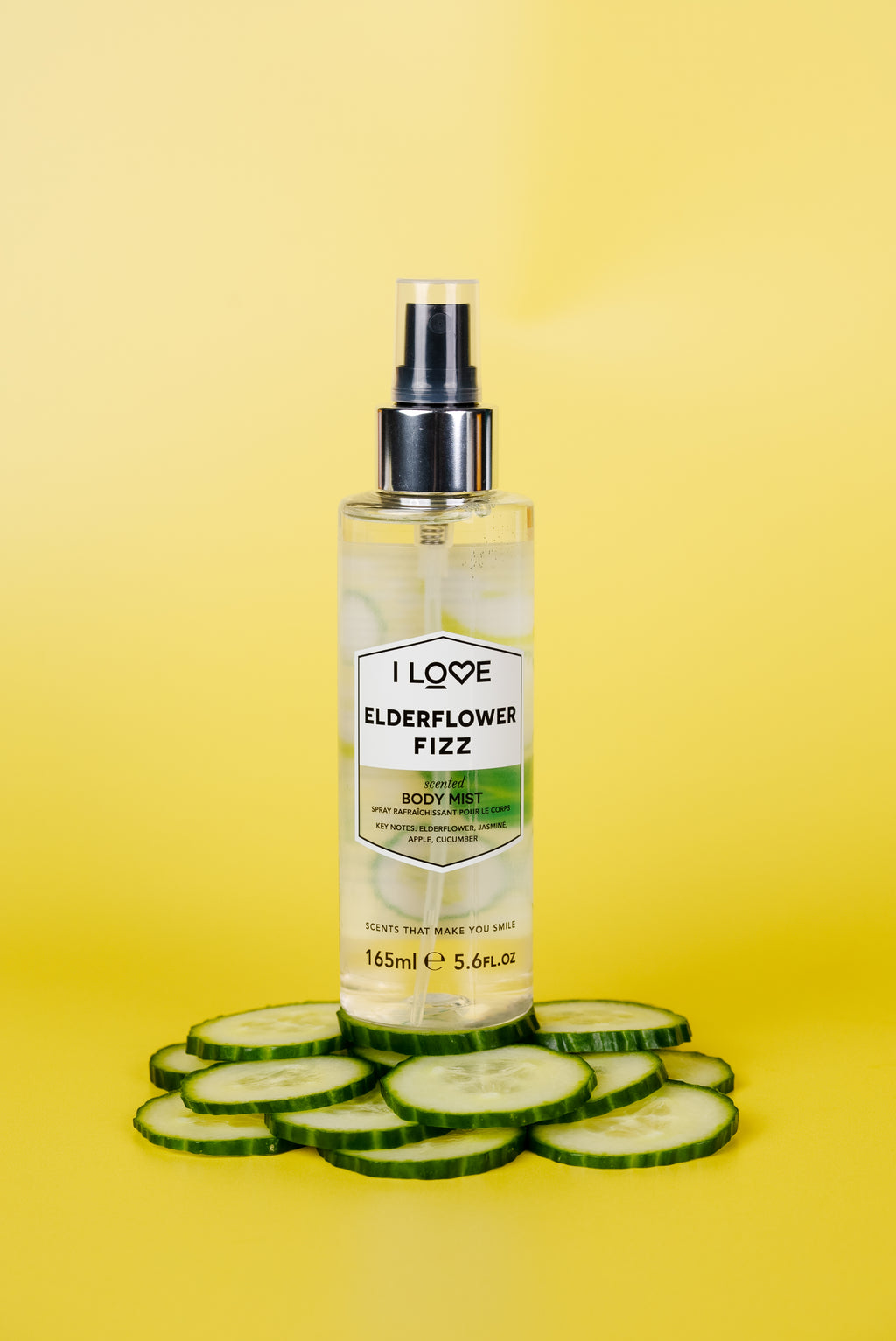 Freshen up with this beautifully scented Body Mist for long lasting, on the go refreshment. This fast drying body mist is non sticky & won’t stain clothing. It provides a beautiful burst of long lasting fragrance for up to 4 hours. Formulated with natural fruit extracts they offer a welcome burst of fragrance to help keep you smelling irresistible. A pamper product that is sure to become a handbag essential. These Body Mist's are perfect for refreshment throughout the day, just throw one in your gym bag, hand bag or school bag. The I LOVE Signature Elderflower Fizz body mist is a sweet, floral & fresh floral fragrance.