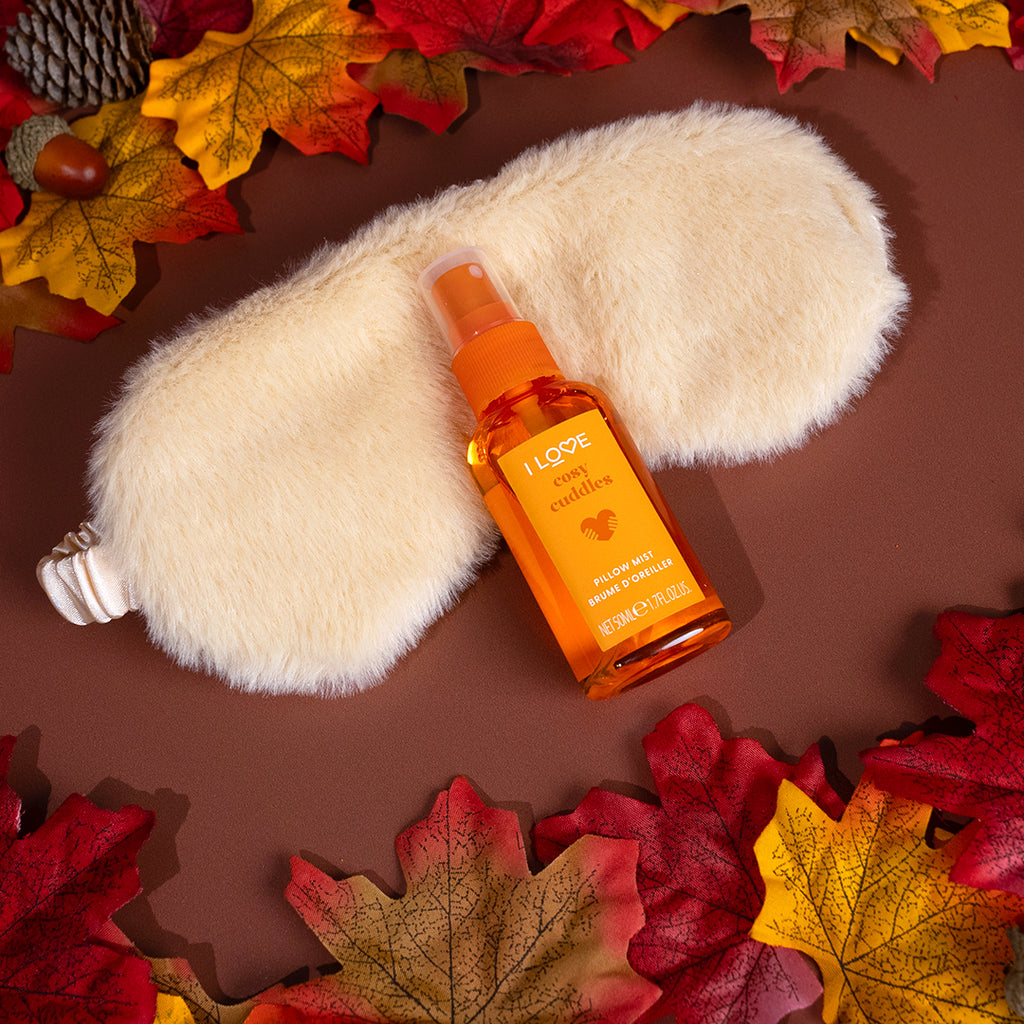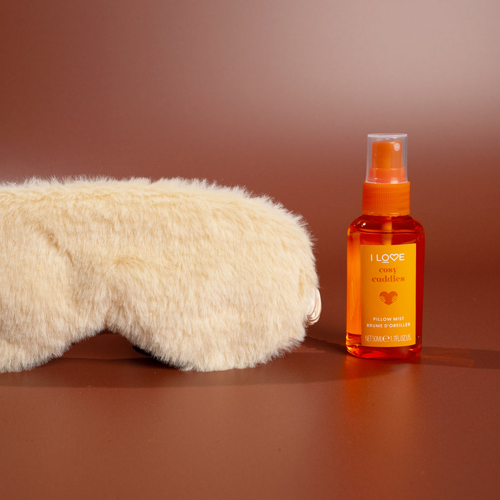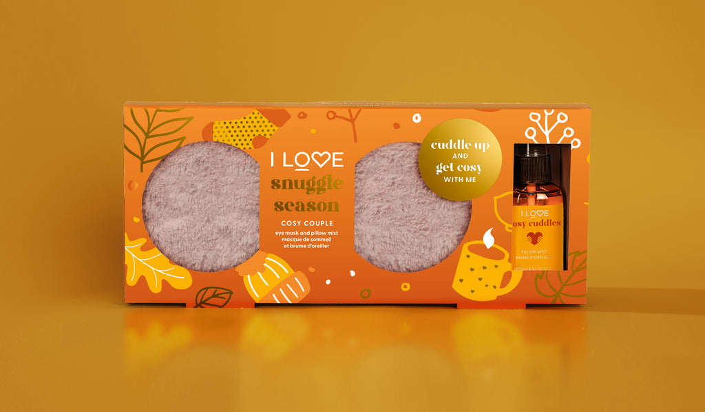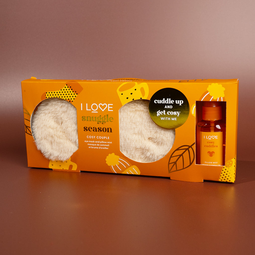 Cuddle up and get comfortable with I LOVE Snuggle Season. A cosy couple specially designed to help you wind down and get snuggly. Our beautifully fragranced mist and luxuriously soft mask will leave you wanting a cost night in every night of the week.