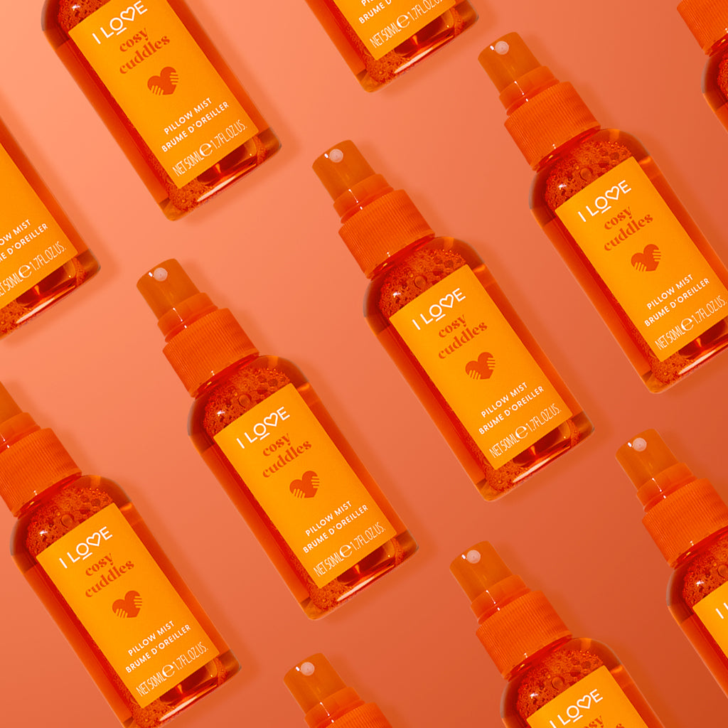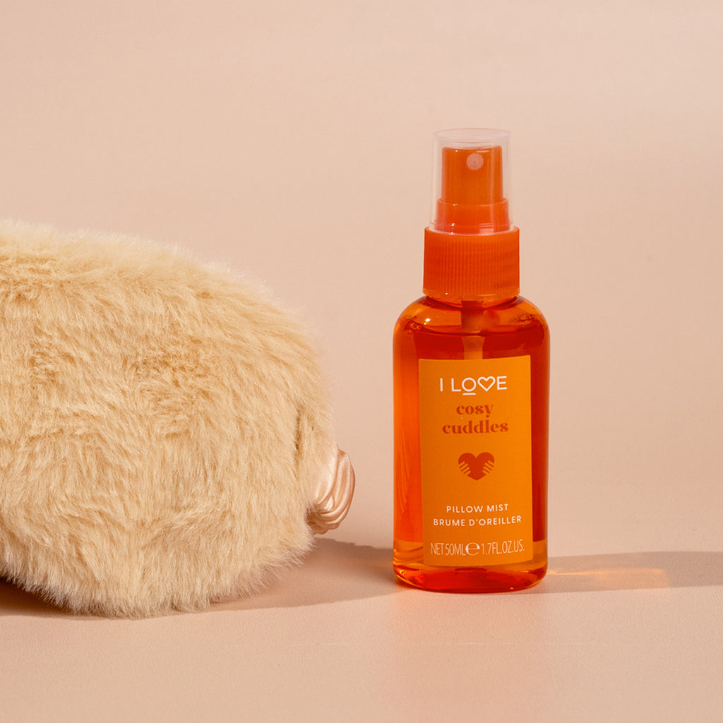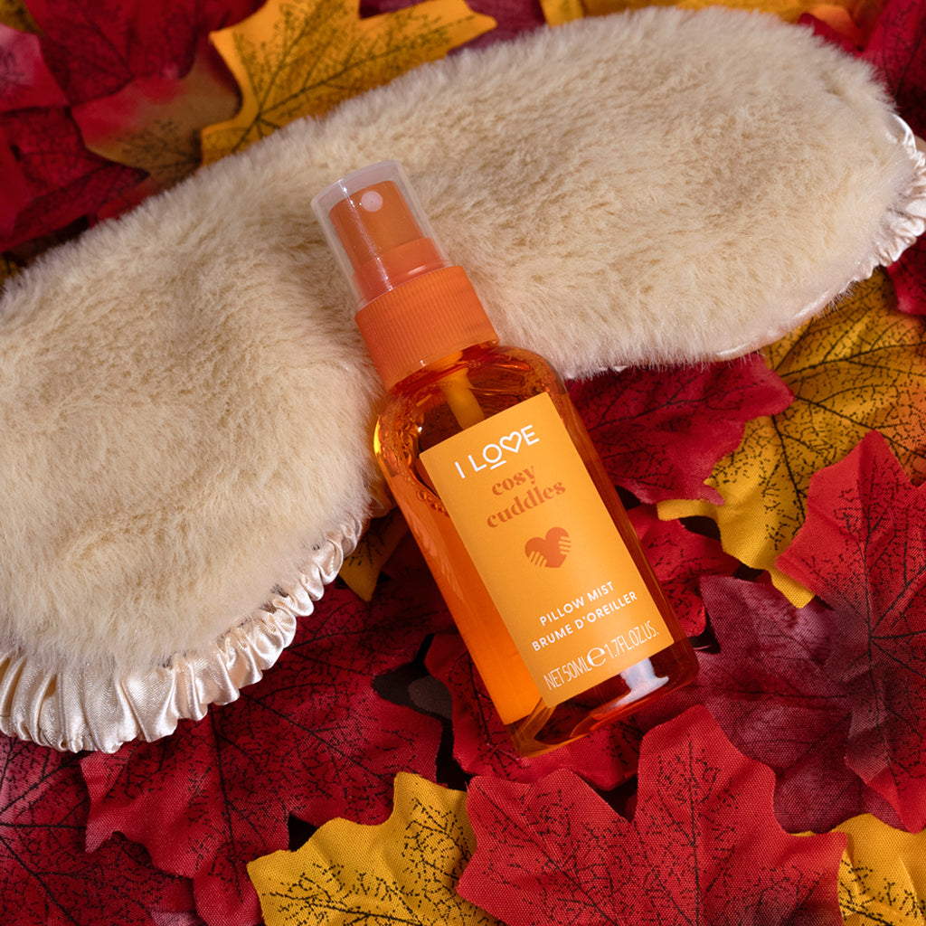 Cuddle up and get comfortable with I LOVE Snuggle Season. A cosy couple specially designed to help you wind down and get snuggly. Our beautifully fragranced mist and luxuriously soft mask will leave you wanting a cost night in every night of the week.