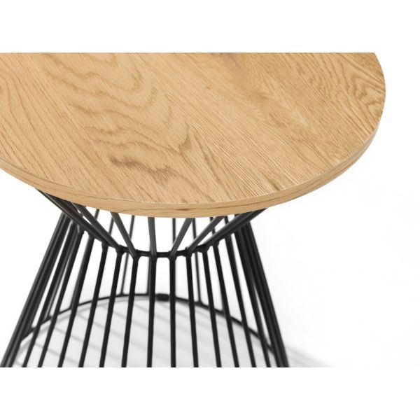 The Jersey Lamp Table will add a contemporary addition to any living area. Featuring a black wire frame with a fixed round oak effect top, this lamp table creates a striking industrial feel with a classic contrast.