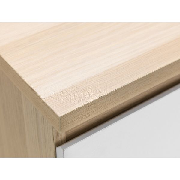 •Modern High Gloss white Drawers/Doors with a oak effect frame