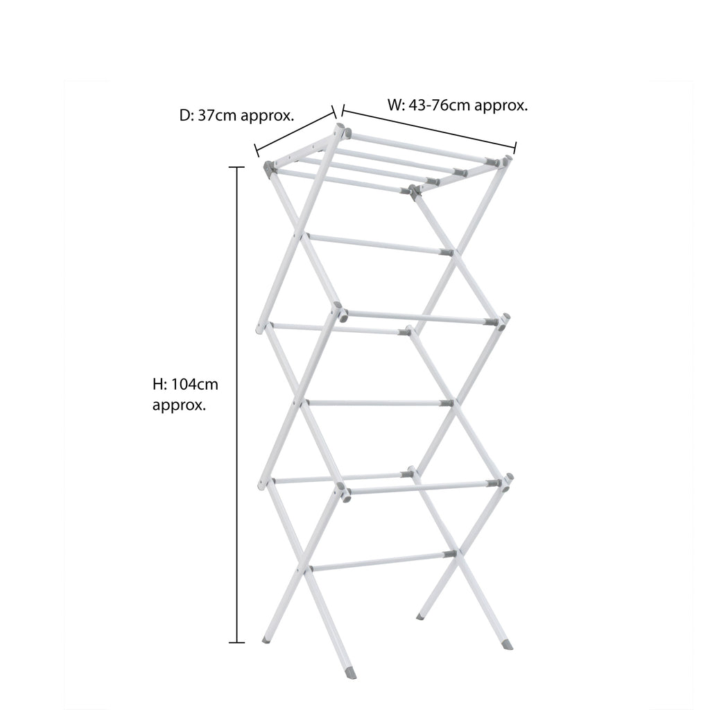 3 tier concertina airer provides 8 metres of drying space with 11 bars for hanging clothes of all sizes