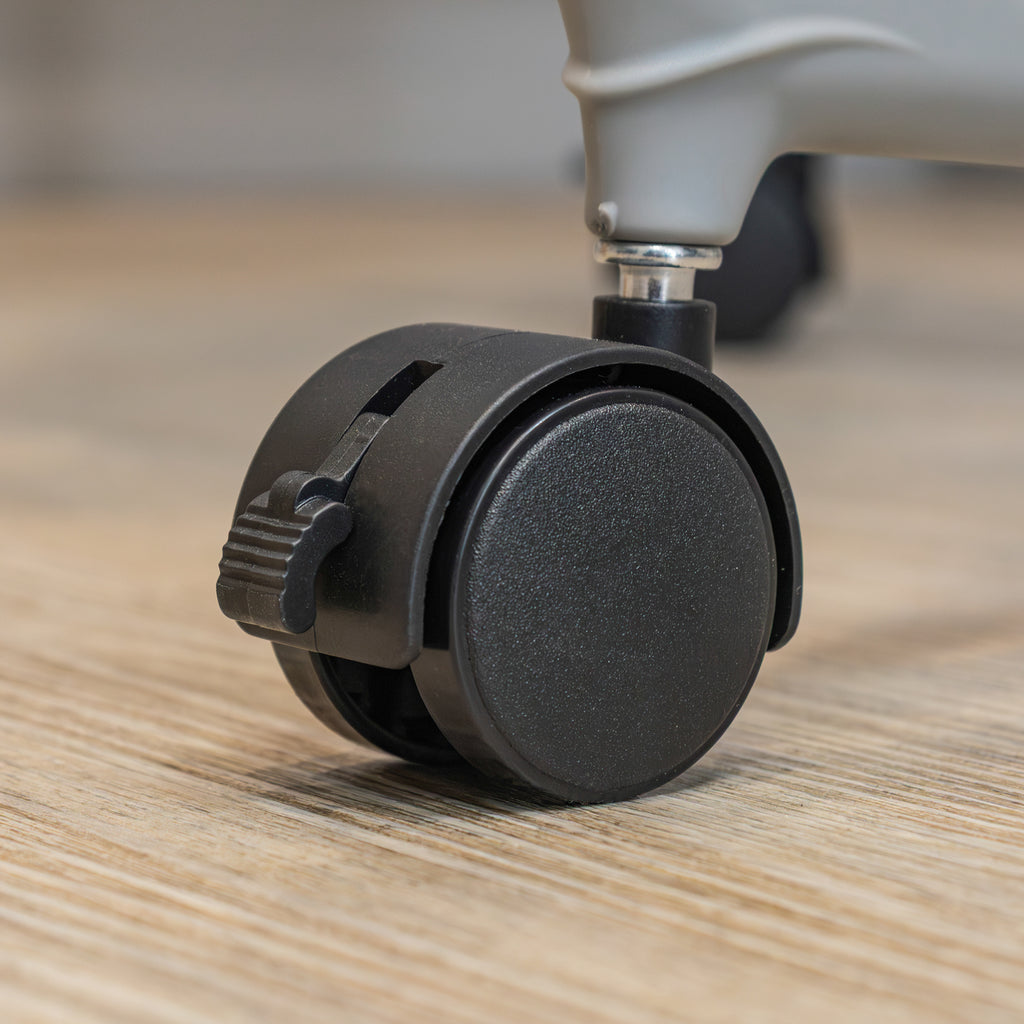 Quality white powder-coated finish with grey accent colour to fit with most interiors, easily moves with the four wheels attached, two feature brakes
