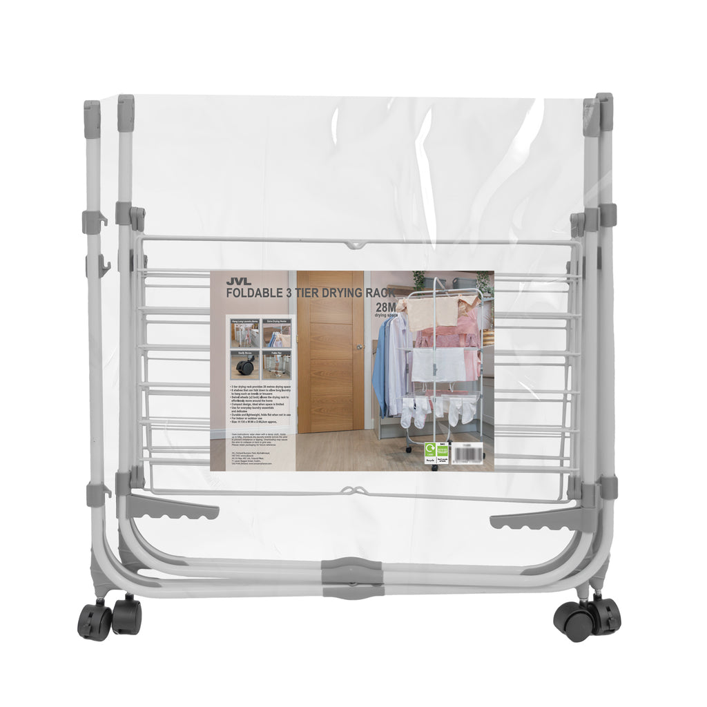 3 tier drying rack provides 28 metres of drying space and 42 bars for hanging laundry of all sizes