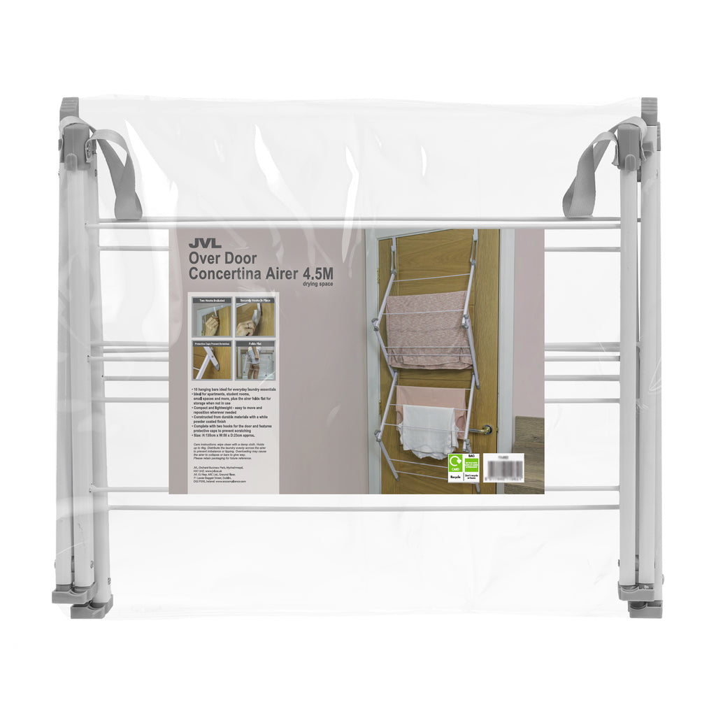 When drying space is limited, this over the door drying airer offers a smart, compact solution with 4.5 metres drying space - it's ideal for small homes or flats/apartments. Features 10 bars to hang standard laundry items including clothing and hand towels. It has been designed to make the most of small spaces and hook securely over most standard doors. The concertina airer helps you dry everyday essentials to delicate laundry without taking up floor space or relying on a tumble dryer.