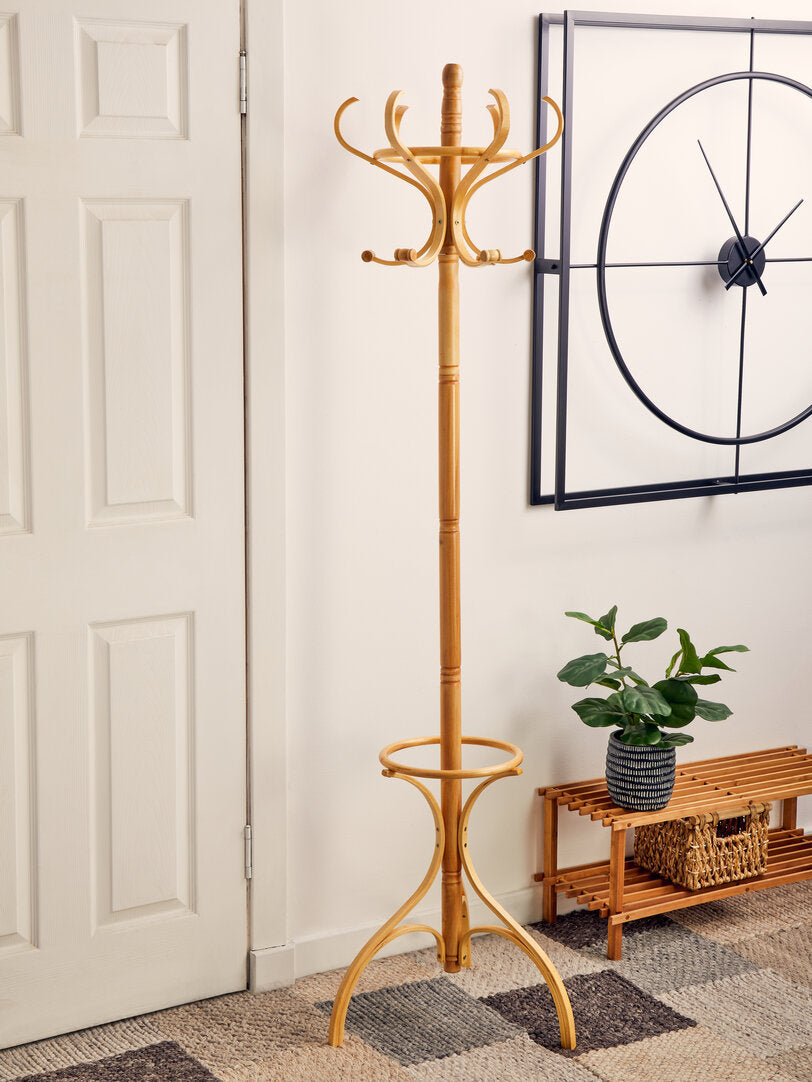 A stylish and practical addition to any home decor. This freestanding, durable, and sturdy, coat stand is ideal for keeping next to the front door where to neatly place the jacket, hat, or umbrella, helping to keep home organised and clutter-free.