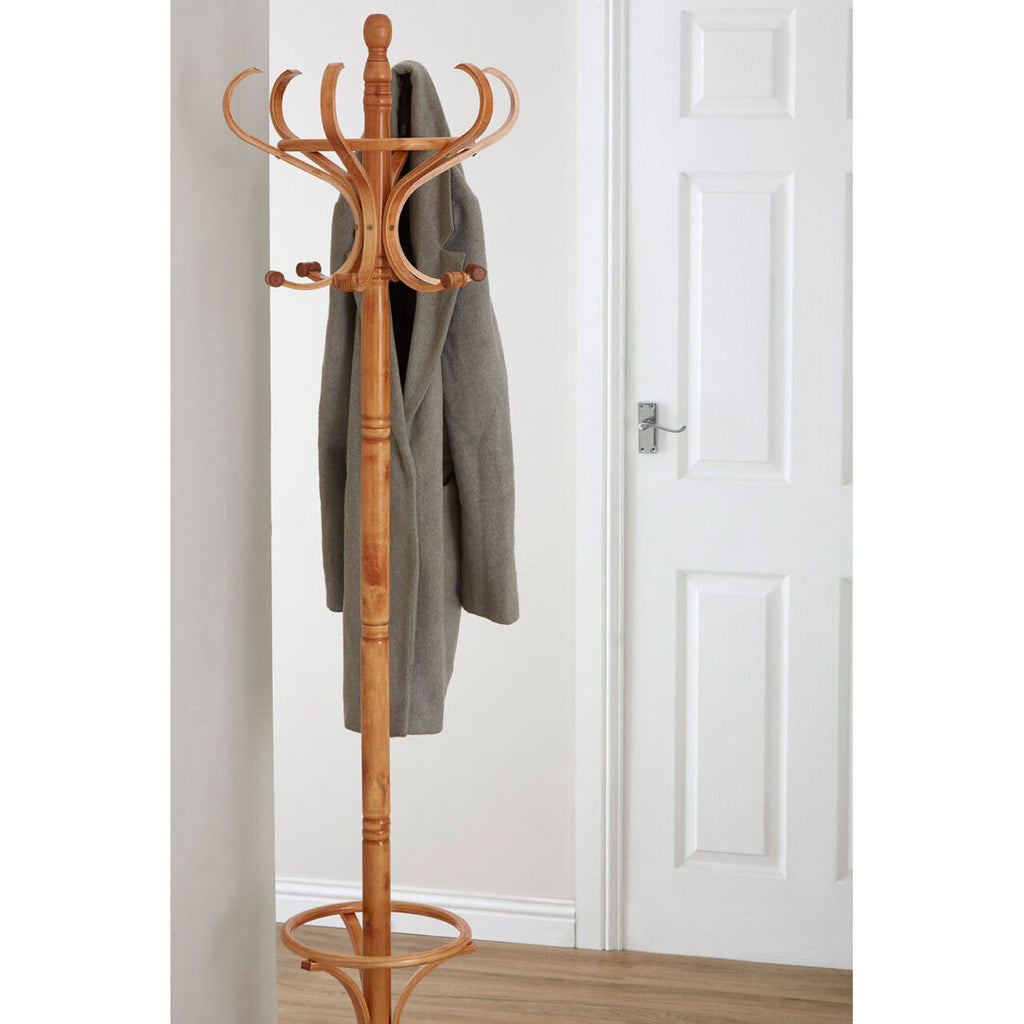 With twelve hooks for storing coats, jackets, hats, and scarves, this floor-standing coat stand is a stylish and practical addition to any home.