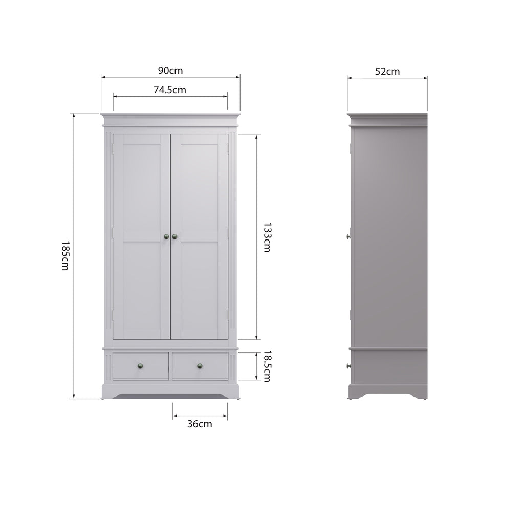 Keswick Moonlight Grey Wardrobe 2 Door 90 x 52 x 185 cm