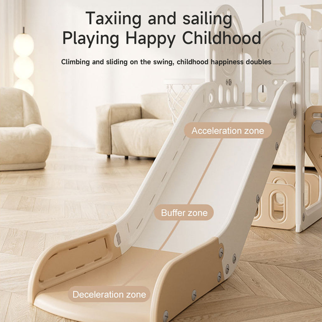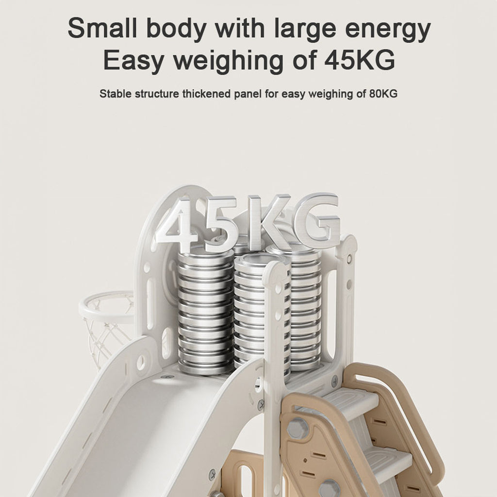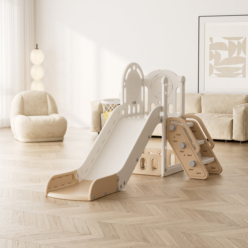 Double the fun awaits with this 2-in-1 toddler slide play set. Featuring both a slide and a basketball hoop, it encourages physical development and imaginative play. The slide is divided into three zones, acceleration, deceleration, and buffer, to ensure a safe and enjoyable ride. Crafted from durable, non-toxic, odourless HDPE and PP materials, it is safe for young children and built to withstand energetic play. Stable and tip-resistant, this freestanding set is also easy to assemble and disassemble, allowing you to bring the fun anywhere.