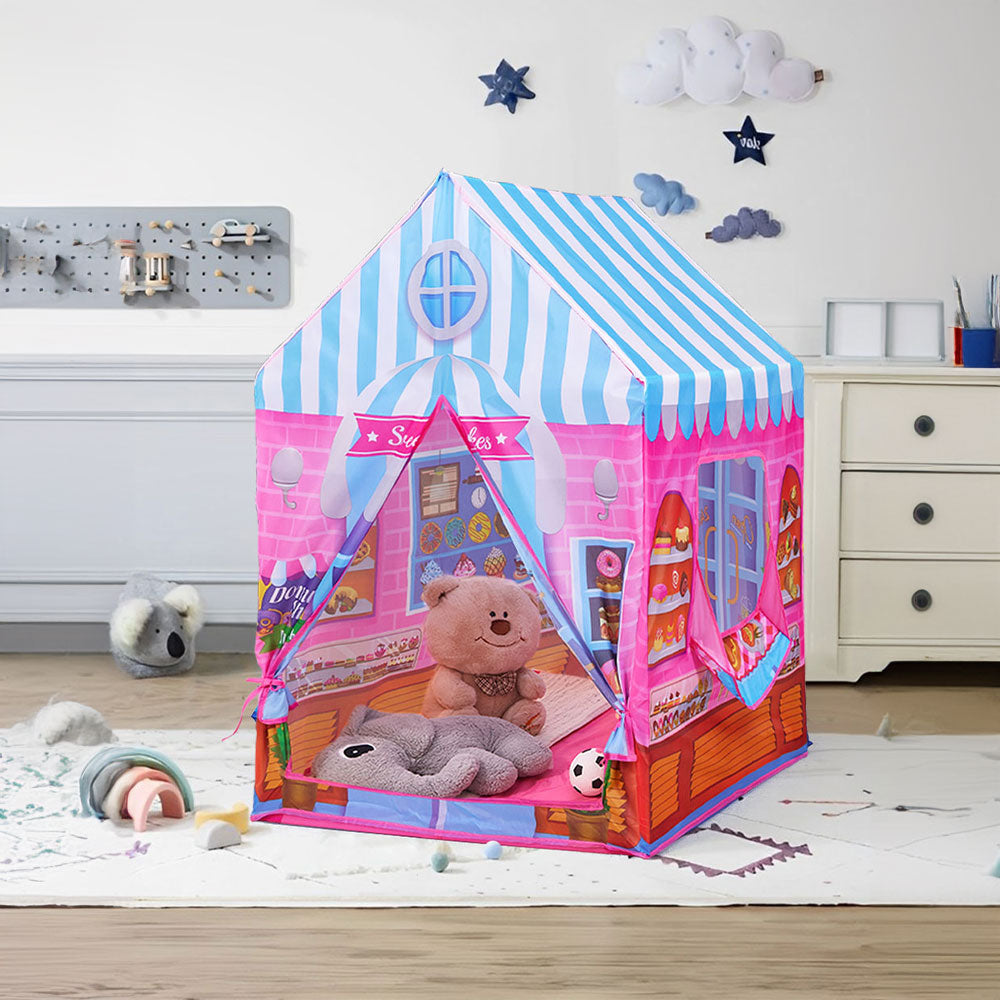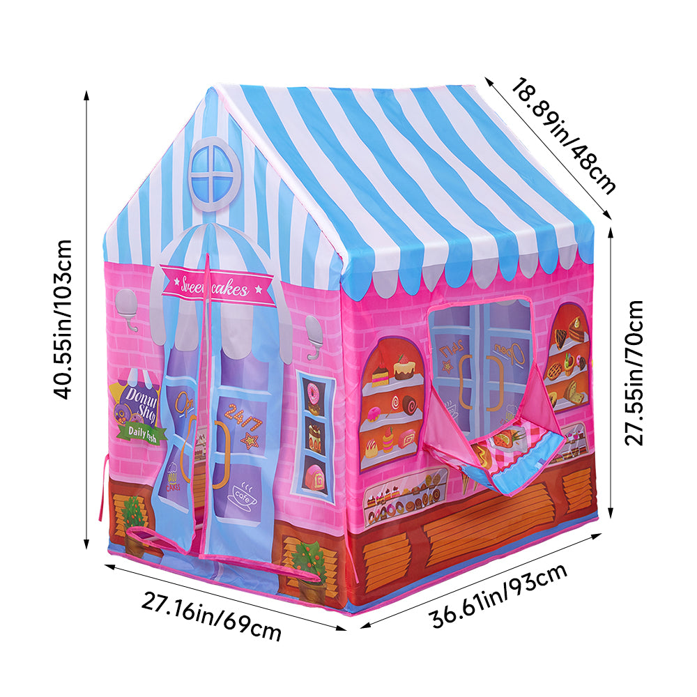 This play tent is a magical hideaway for children. Its sloping roof, bright colours, and fun cartoon designs make it look like a fairy-tale cabin that children will adore. Made from strong, lightweight, and breathable fabric, it?s durable and easy to set up indoors or outdoors. Perfect for reading, playing, or resting, kids will love spending time here, making happy childhood memories.