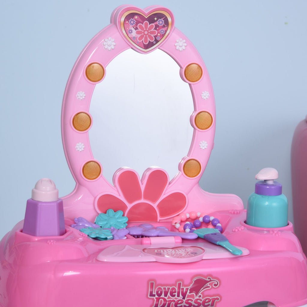 Are you looking for the perfect toy for your precious child? This pretend vanity set will fulfill the princess dreams of every little girl. It’s designed to let your child's imaginative run wild without any limitations. This children’s vanity set has built-in lights and sounds for added entertainment. It has all the makeup accessories her mom has like bracelets, lipsticks, nail polish, comb, a working hair dryer, and more, which making playtime fun-filled and totally exciting all day long. It is a great set to fulfill a young girl's princess dreams and boost her confidence at the same time!