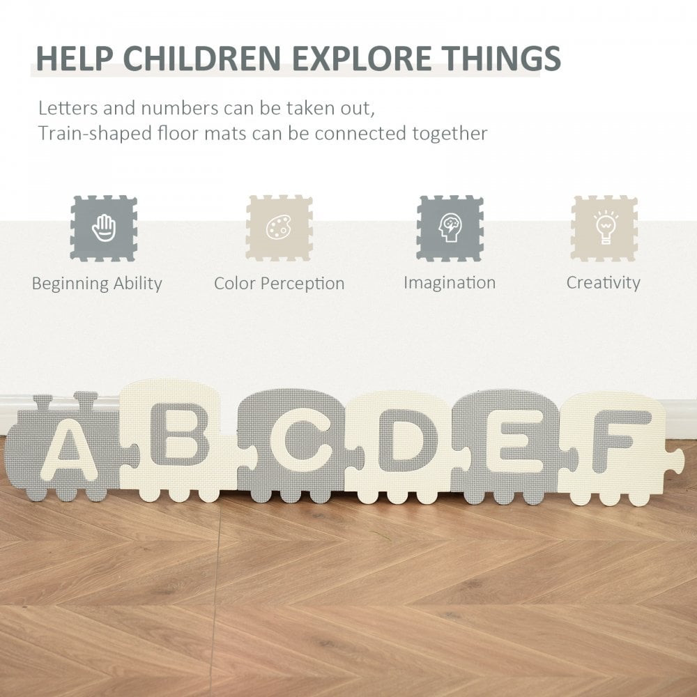 - EDUCATIONAL: There are various letters and numbers on the surface and they can be picked off, providing a great material to develop your kids' cognitive ability. The middle train-shaped floor mat can be removed and connected together separately, adding a lot of interest.