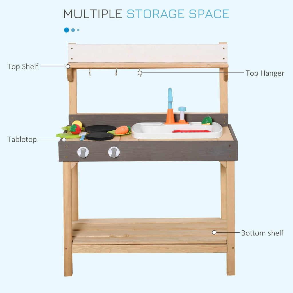 This Outsunny cooking play set is designed for the development of children and will give them hours of fun and playtime - a wonderful pretend-play experience. It helps kids with developing hand-eye coordination, imagination ability, cognitive ability, operating ability, attention, creativity, and observation. Offering kids the real cooking experience, they'll never want to stop using this set.