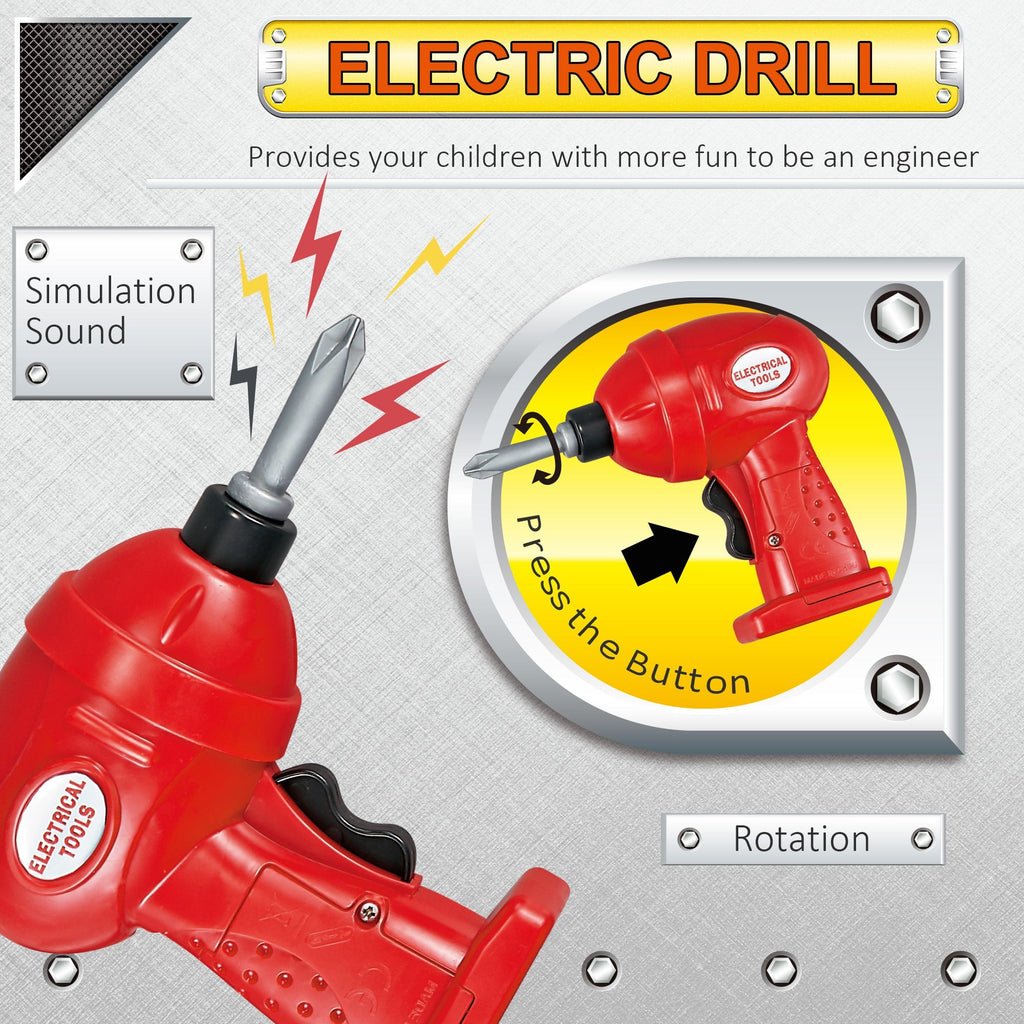 The pretend play toy tool workbench table set from HOMCOM includes 55 pieces of play tools such as hammer, wrench and electric drill, keeping kids entertained for hours of imaginative fun and further helps to develop their dexterity and hand-eye coordination. The PP materials are certified and smooth edges to ensure safe. Comes with gift box, it's an ideal gift for your children to cultivate their interests and develop fine motor skills.
