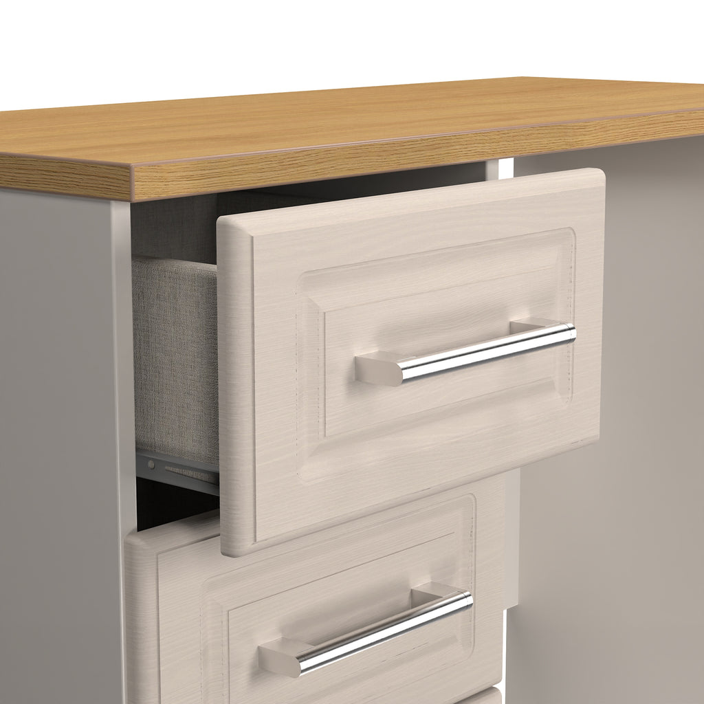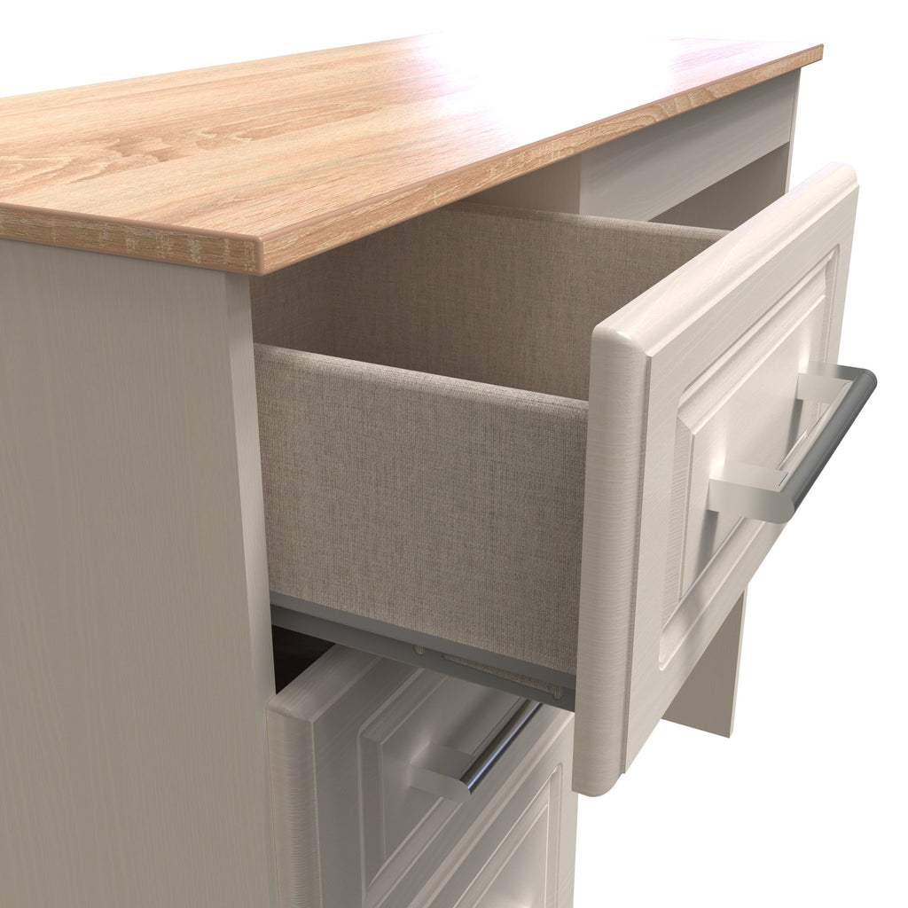 Made in the UK; Scratch Resistant Finish; Ready Assembled; Traditional Two Colour Design; Metal Pull Bar Handles; Does not have legs; Smooth Metal Drawer Runners; Linen Effect Drawer Linings