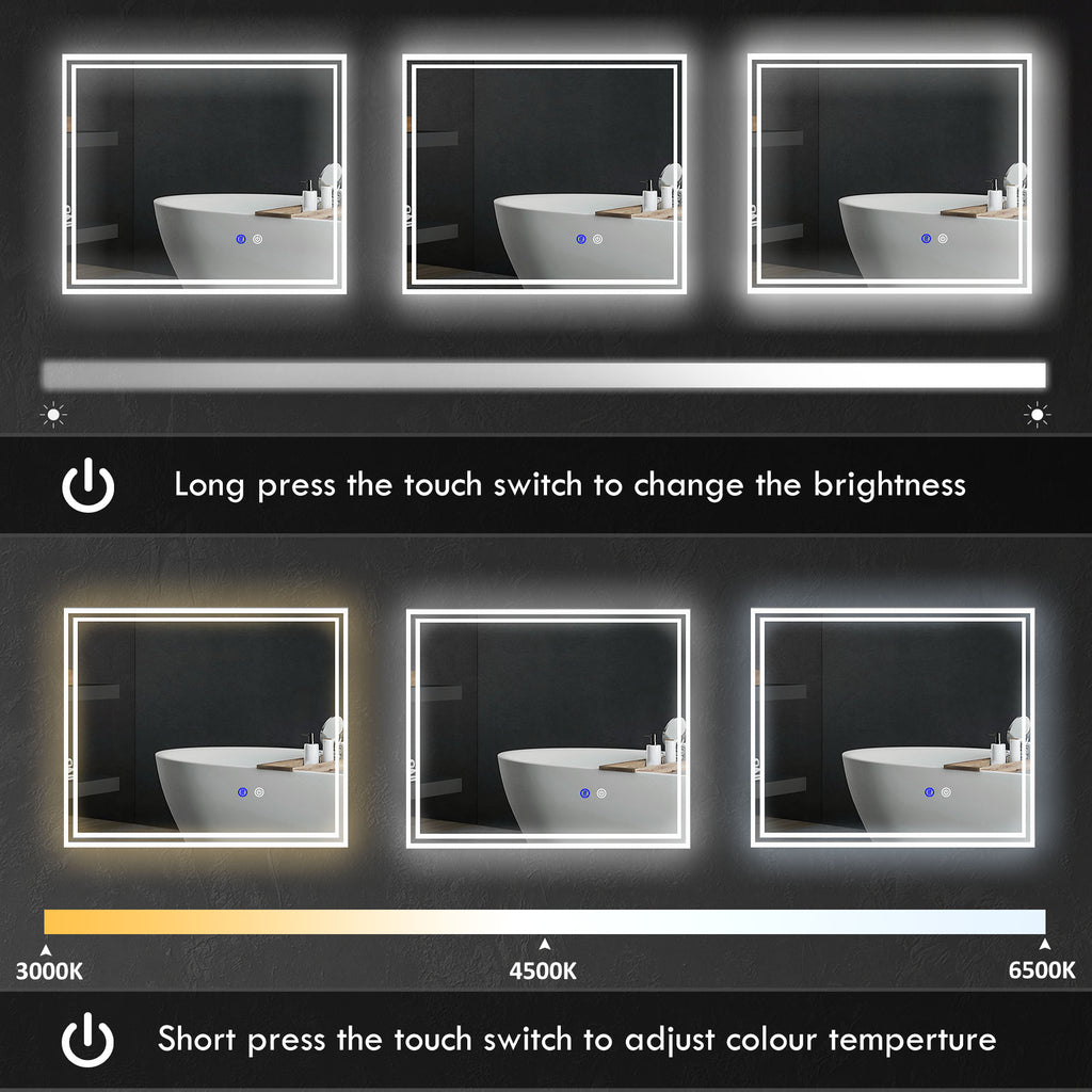 Not only a bathroom essential, but this kleankin LED mirror is a trendy piece for your everyday place of hygiene. Go bold with its square design - a striking addition for your space. The edge is fitted with an adjustable LED light - use the touch sensor to adjust the brightness and colour between warm white, white and cold white. The anti-fog function means the mirror doesn't become steamy, so you can see your reflection in this makeup mirror, even straight out from the shower.