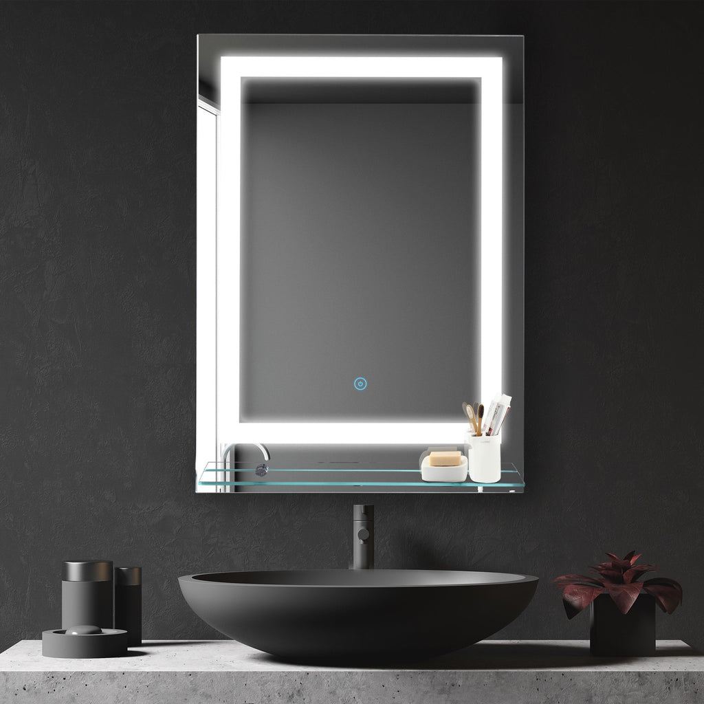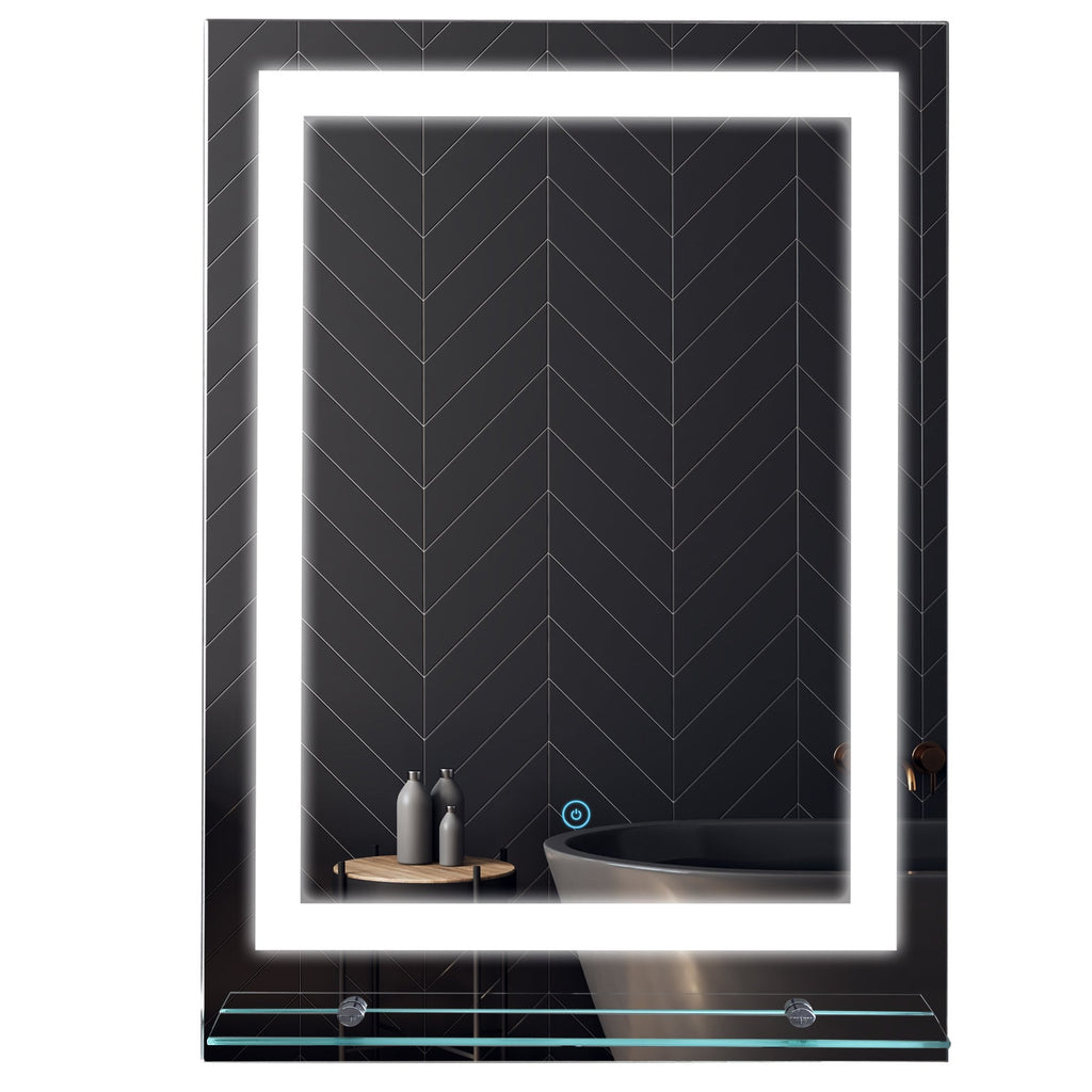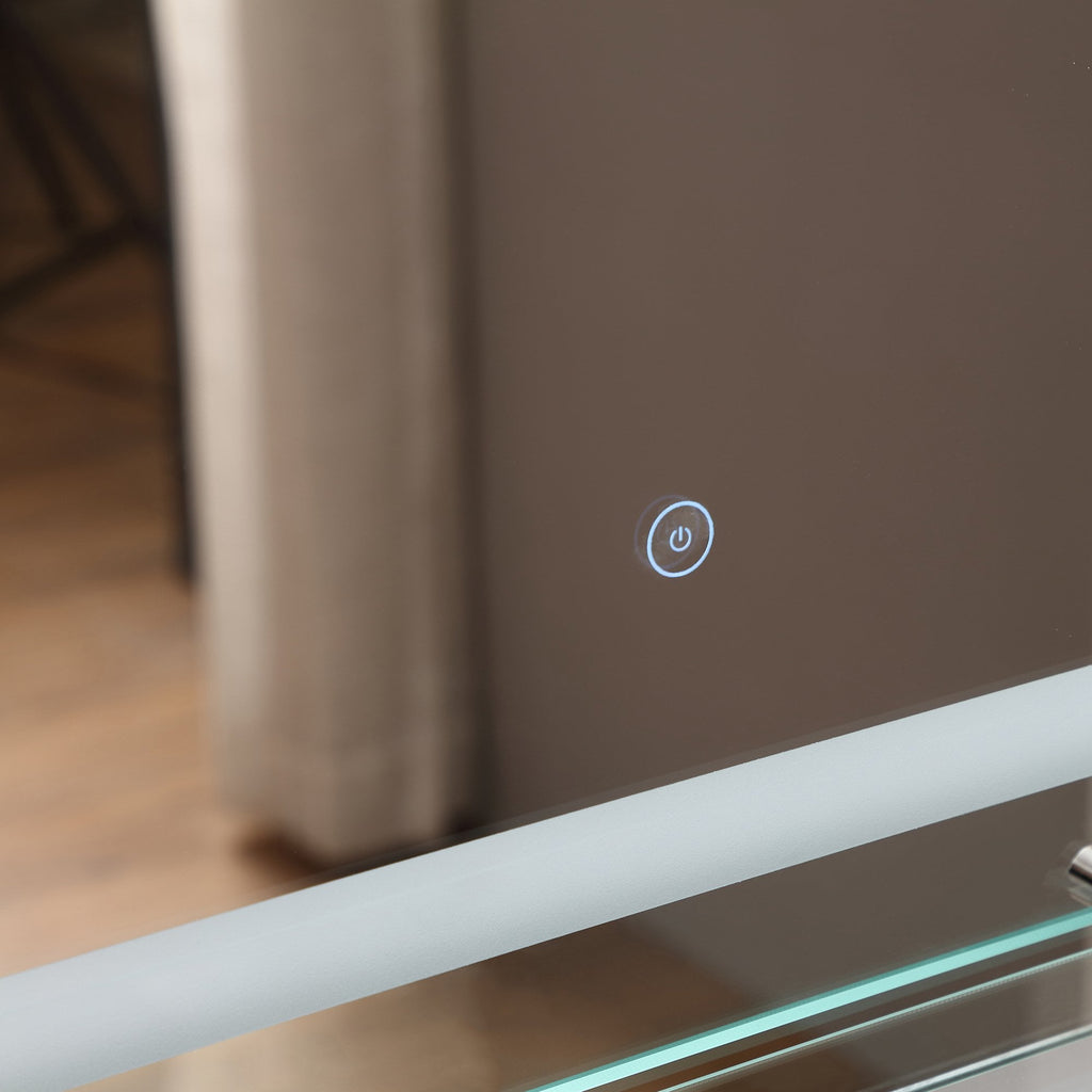 Bring contemporary style and soft illuminating light to your bathroom with this light up mirror from kleankin. Rectangular in shape, it is made with a touch-sensitive switch to turn the light on and off easily. The illumination is soft yet strong, giving you plenty of room to see your reflection without it being too harsh upon your face. A bottom glass shelf provides holding room for your cosmetics and toiletries. Energy efficient to cut down on electricity usage, the frame is waterproof so it is suitable for using in a bathroom. Simple and sleek style you'll love putting to use everyday.