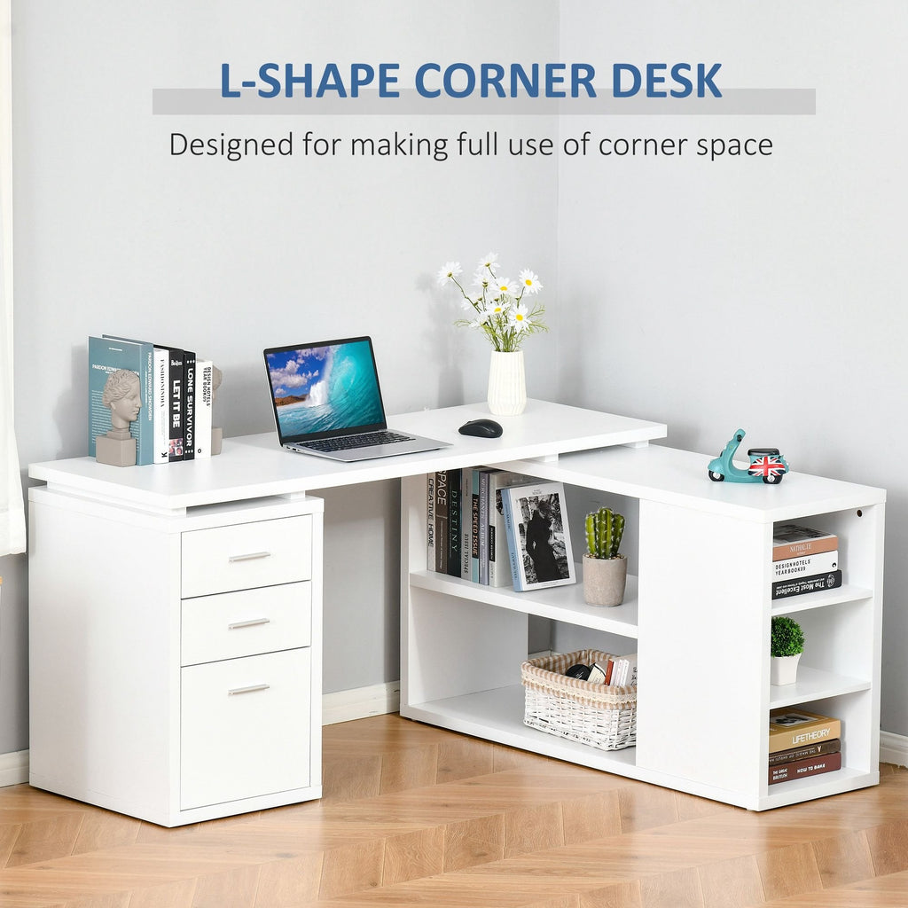 Ever feel your workspace has no room to offer? Then grab this HOMCOM 'L' shaped corner desk. Fitted with side shelves and drawers for handy storage right next to you - ideal for files and more. Create a stylish work space and storage area in one with this unique offering from HOMCOM.