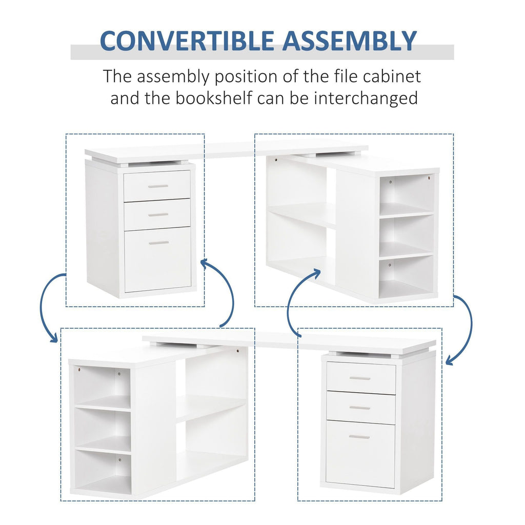 - 'L' SHAPE: Space saving, suitable for smaller areas. Filing cabinet and side shelf can move positions.