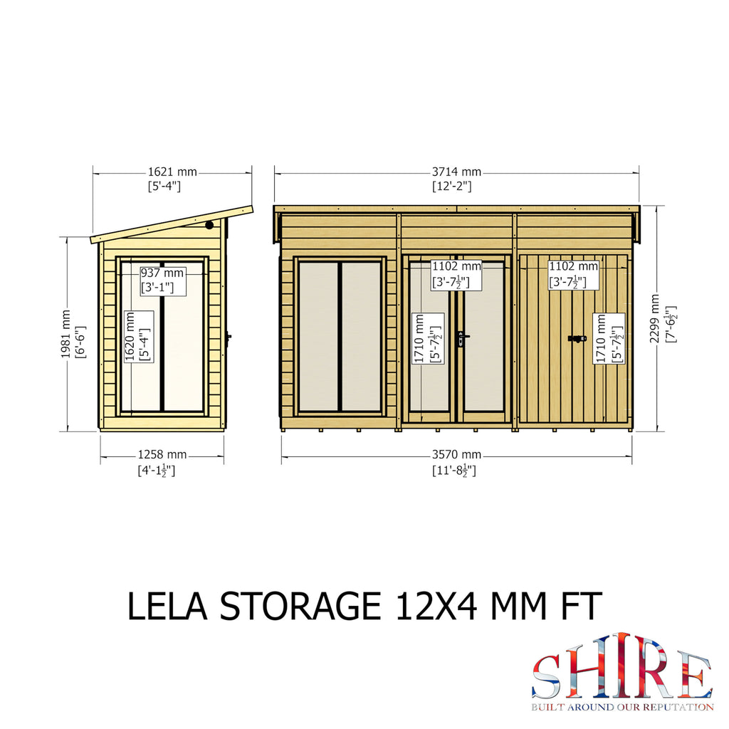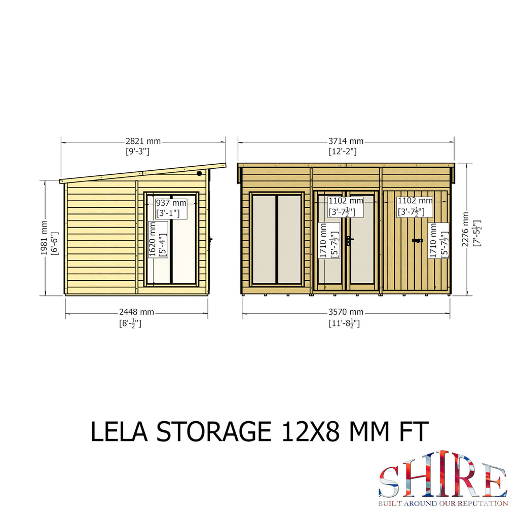 This stylish Lela Summerhouse with its versatile design, cleverly incorporates a separate storage room and is a valuable addition to your outdoor living. With an eaves height of around 7 ft high, the Lela provides a very comfortable, spacious interior. This modern garden room is perfect for summer dining and relaxing. The joinery made double doors are fitted with a mortice lock and the single door has a padbolt ready for your own padlock. The double doors and fixed windows are glazed with acrylic safety glazing. The building is constructed on 34mm square framing and clad with planed shiplap tongue and groove boards made only from the highest grade, slow grown, FSC approved, slow grown pine. The floor and roof are 12mm matching T&G boards and the roof comes with roof felt supplied. Dipped base coat preservative ready for you to top coat.