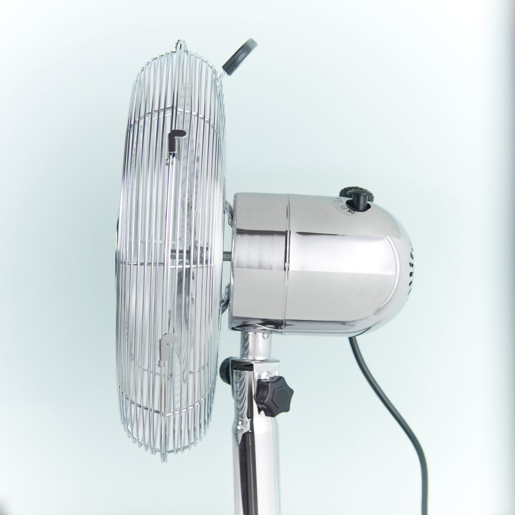 This 12 inch desk fan, with 3 speed settings, comes with adjustable head tilt that enables you to move the fan around. With high speed control and 3 speed settings it is perfect for those long hot sticky summer days! A mesh guard adds extra protection and safety from the spinning blades and the tilting head makes the fan extremely flexible and useful. ,