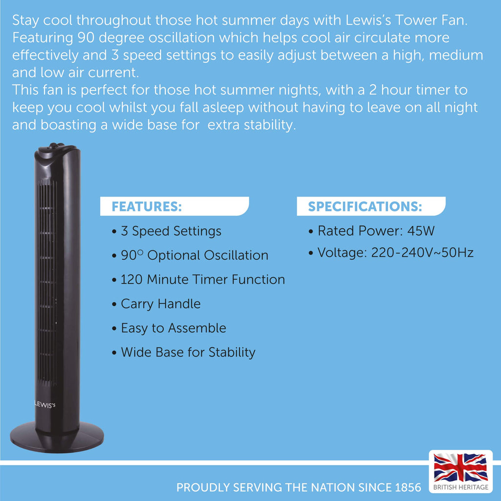 Featuring 3 speed settings, this quality tower fans can be adjusted with ease at the simple touch of a button. Moving between slow, medium, and fast speeds depending on the urgency of your cooling requirements couldn’t be more instantaneous and straightforward. The tower fan is also incredibly quiet and benefits from a bladeless design.