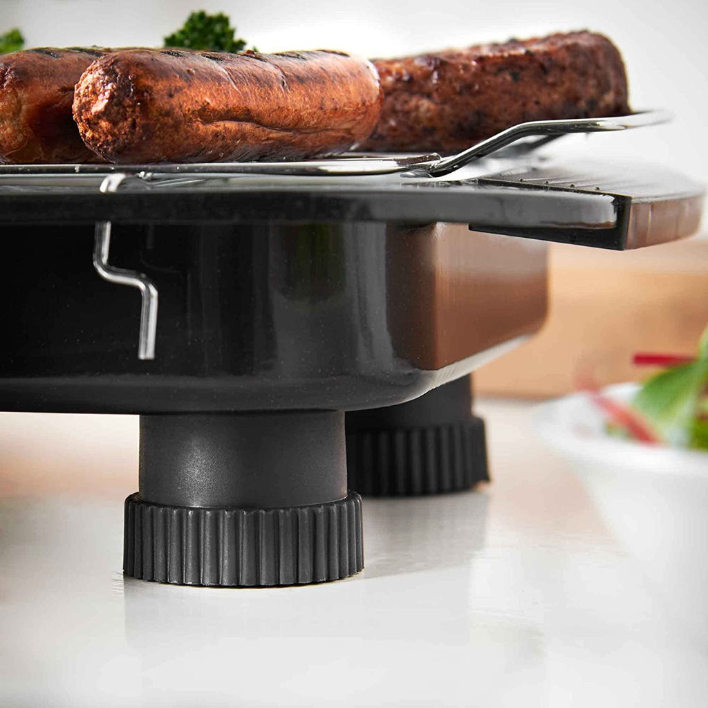 To maximise safety, the legs on the bottom of the electric twin hob bottom are equipped with non-slip rubber feet to ensure stability. The superb and easily cleaned smokeless hotplate also has an integrated thermostat to prevent the burner from overheating.