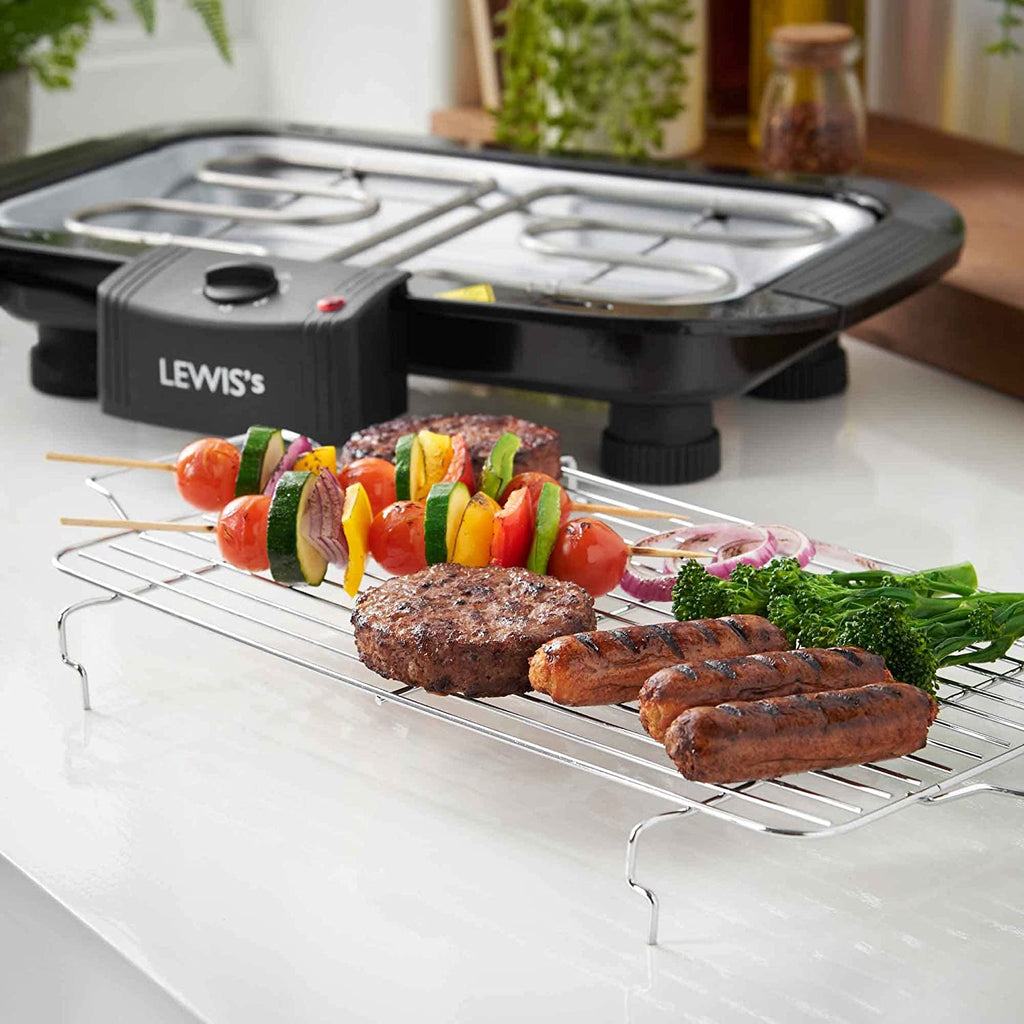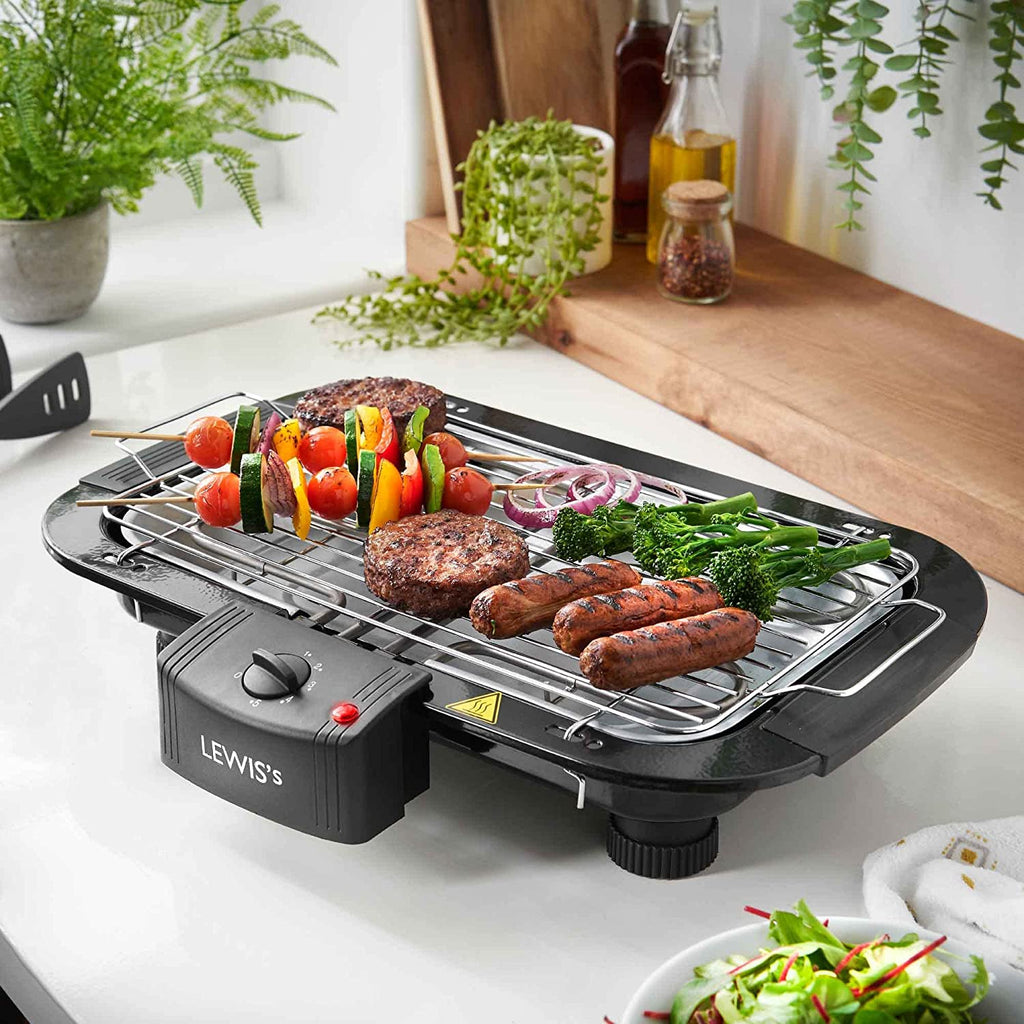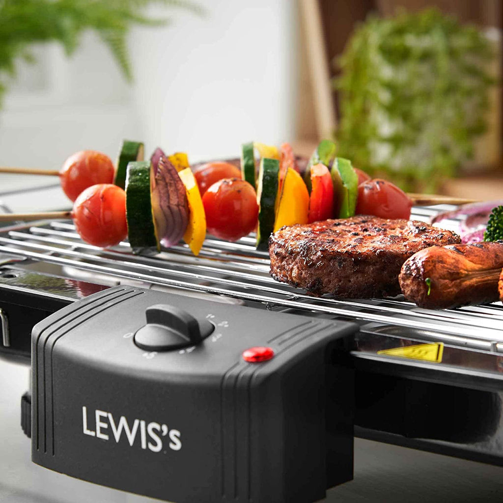 Lewis’s fantastic BBQ grill features a water filled drip tray to reduce odours and smoke. This innovative incorporation helps to retain a smoke and odourless environment during use.