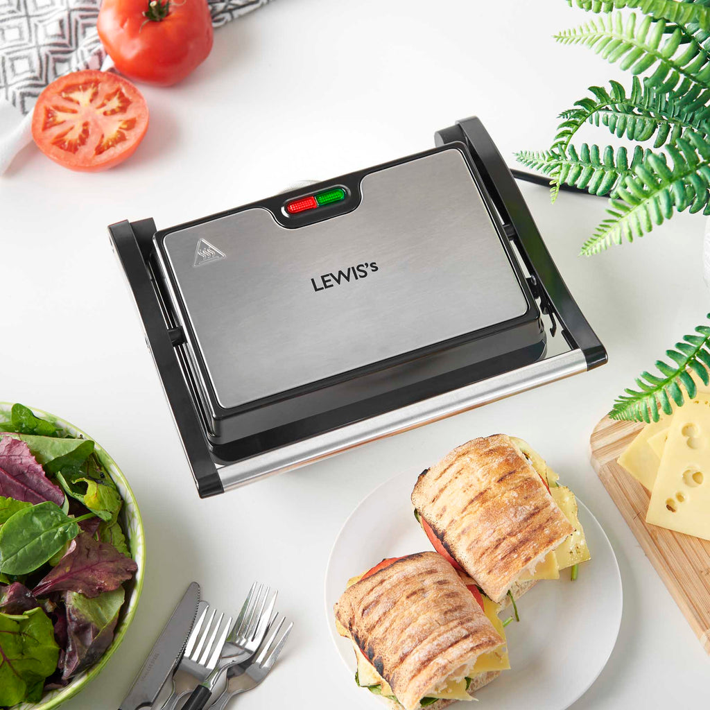 Create your favourite snacks in minutes with the Lewis's Panini Heath Grill. Featuring easy clean non stick ceramic plates requiring no oil, and hinged lid to handle thicker food this grill is great for creating healthier meals. With 750w of power and thermostatic control you will get perfect results every time.