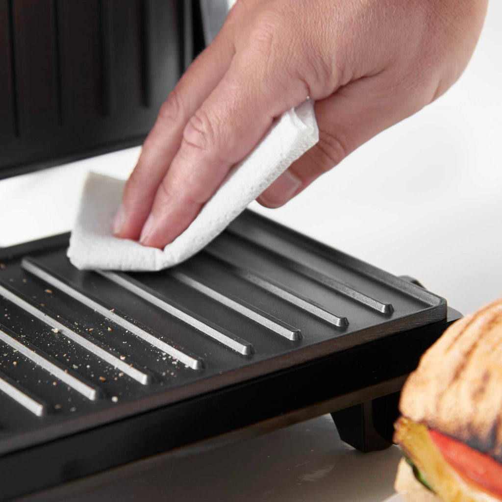 The Lewis’s Panini Grill has non-stick cooking plates which means that there is no need to use oil which is much healthier for you. It also means that cleaning the grill is easier as a quick wipe is all you need