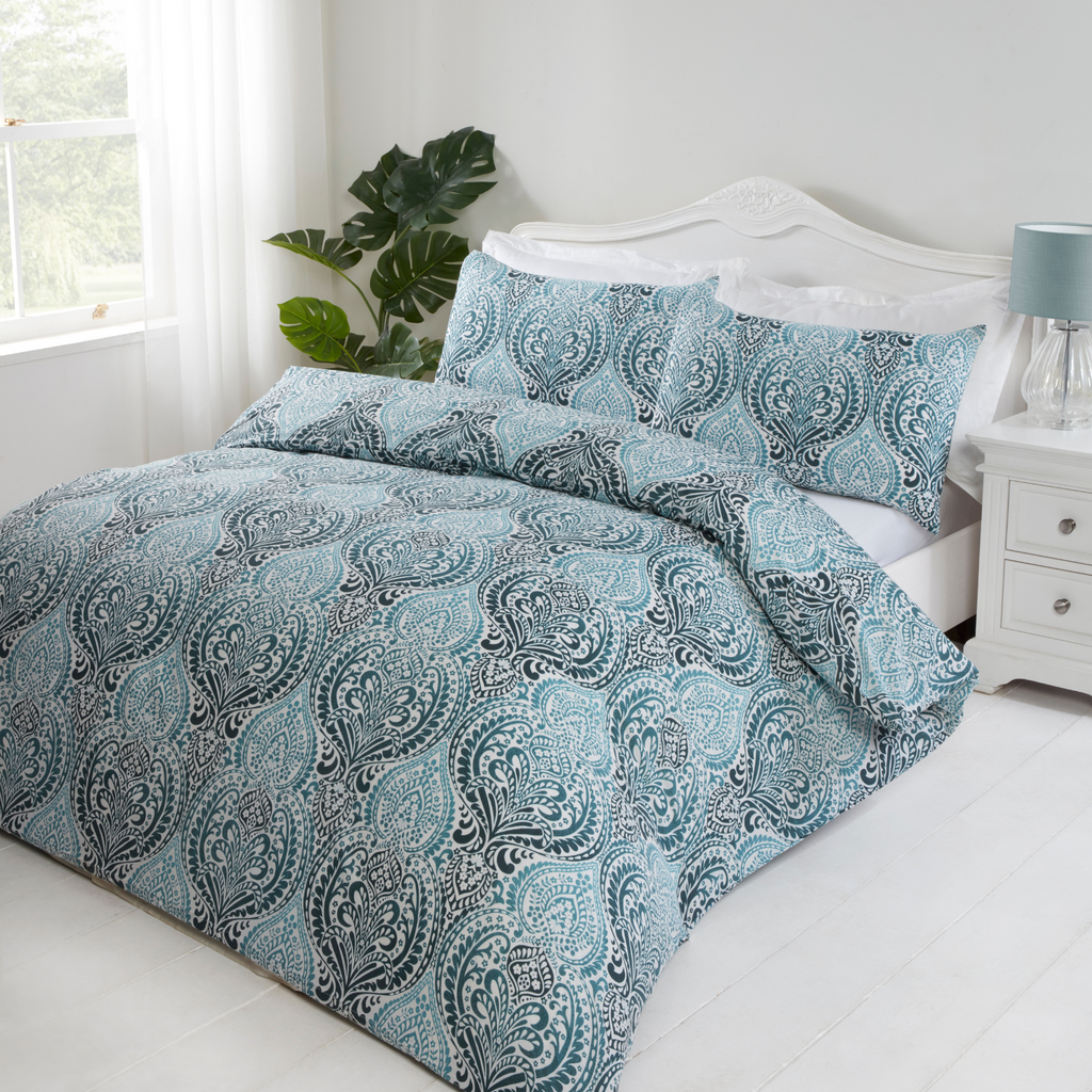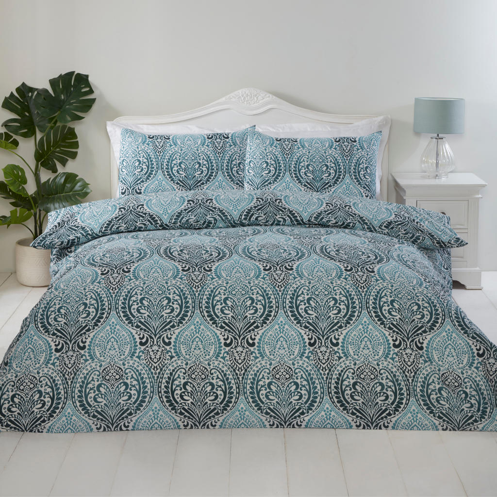 Lewis’s Savoir duvet set looks luxurious with its elegant and intricate damask pattern in stunning blue tones.