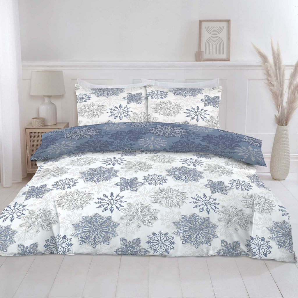 Experience the magic of Christmas this winter with this festive bedding set. Printed with silver and blue snowflakes with a contrasting reverse, Lewis’s White Christmas Duvet Set is sure to add a classic and stylish look to your festive season.