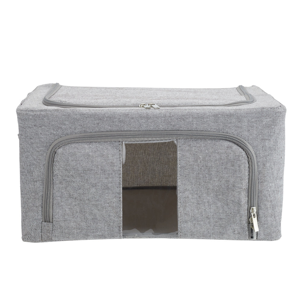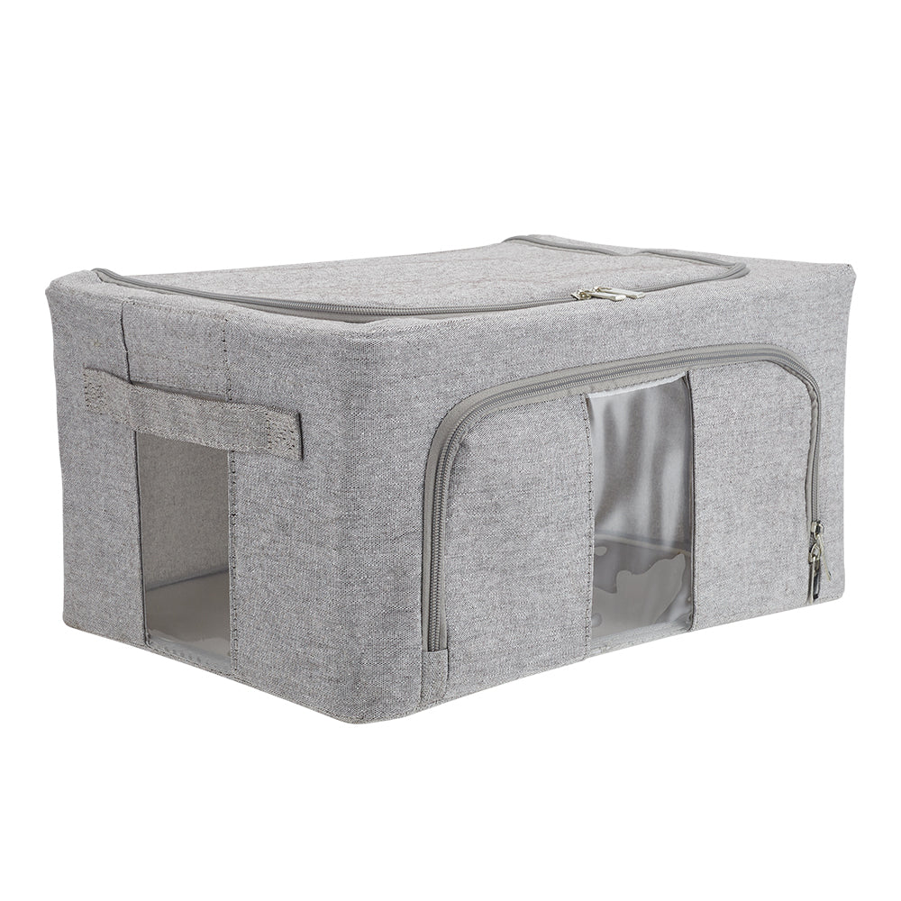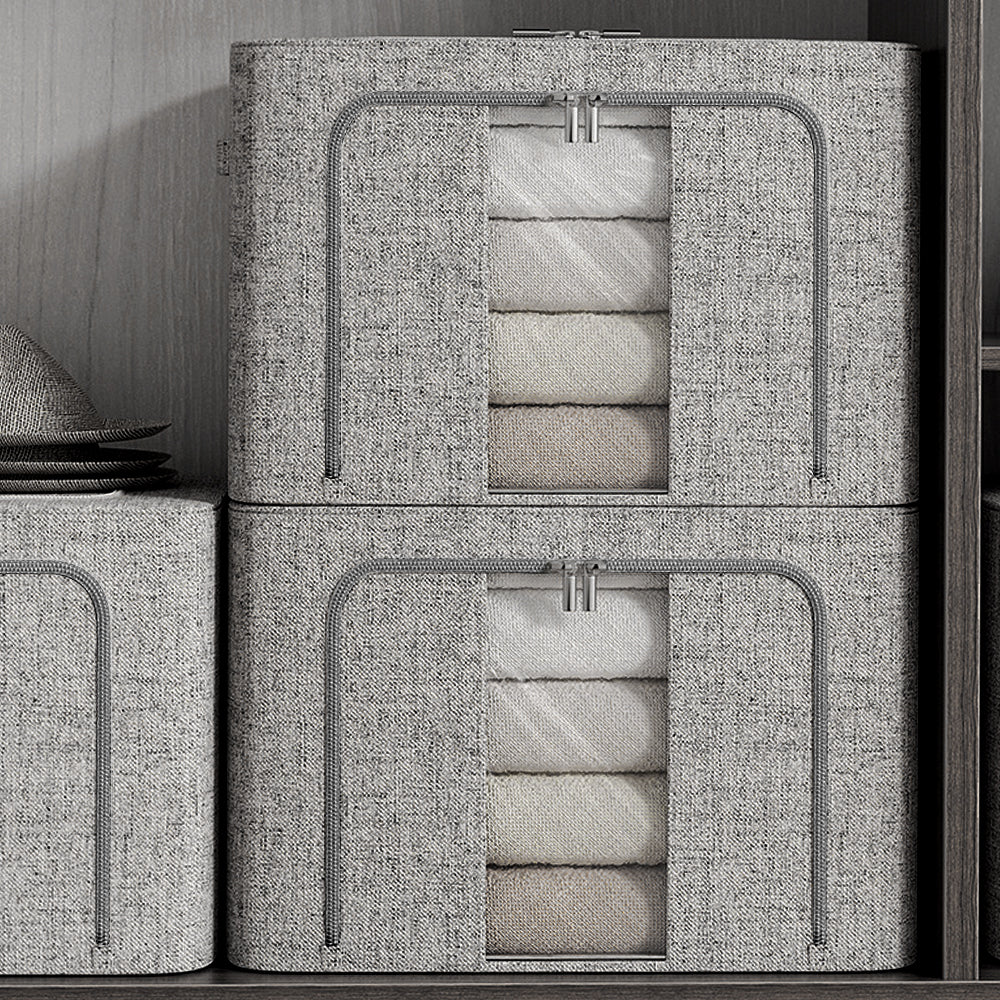 Organise your clothes effortlessly with this Metal Frame Fabric Storage Box. The sturdy internal metal frame ensures the box retains its shape, whether empty or full. Transparent windows on the front and side let you see the contents at a glance, saving time when searching. Built-in handles make it easy to carry, offering both convenience and practicality for everyday storage.