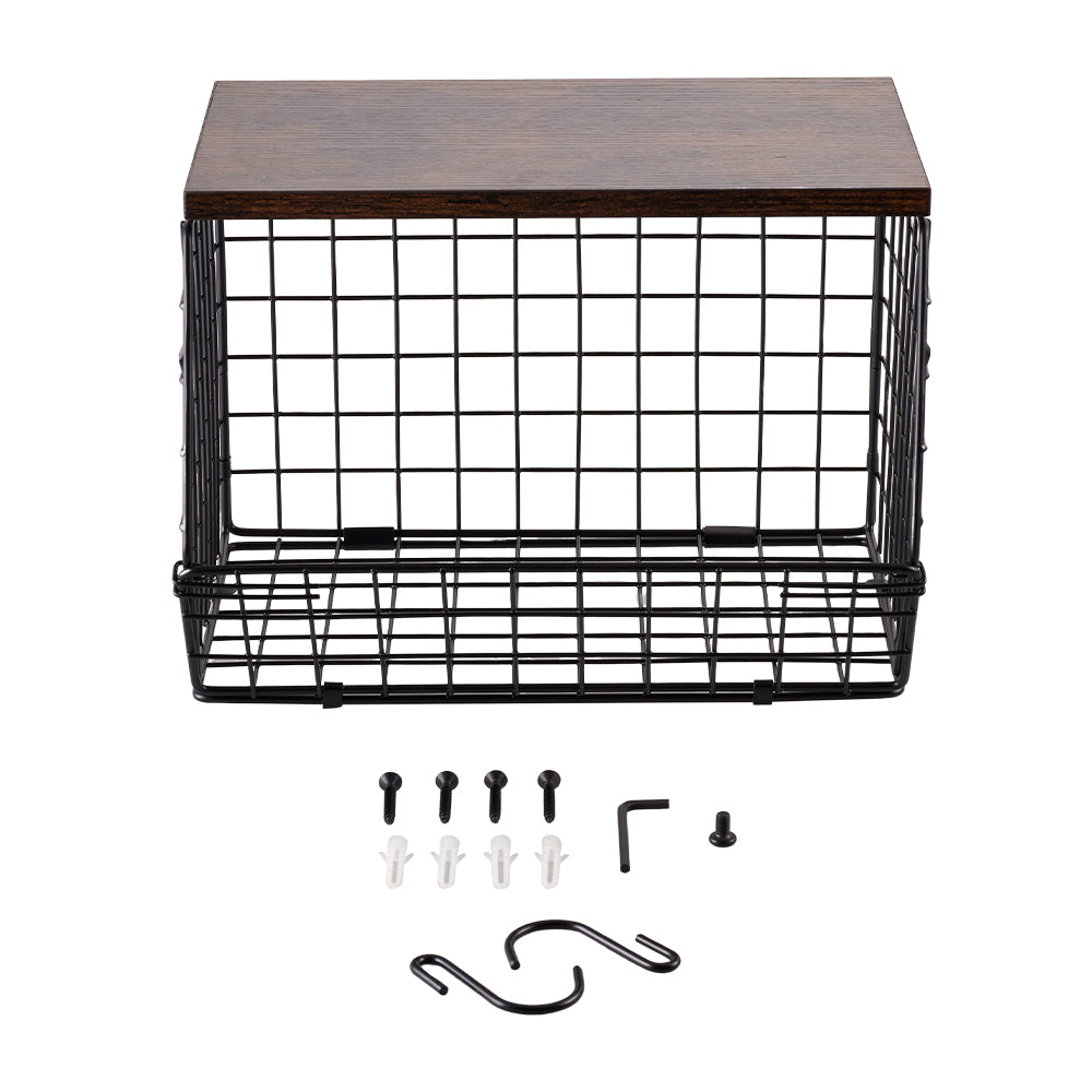 This versatile storage rack can be mounted on the wall or placed on a countertop, offering practical storage solutions for any room. Its hollow-out design ensures good ventilation, keeping items dry and fresh, while the thick vintage-style wooden top provides extra utility. Equipped with two mobile hooks for small essentials and two detachable PVC liners to protect the interior, this rack is ideal for the bathroom, kitchen, or living room. Durable construction and thoughtful design make it a convenient and reliable storage solution for every home.