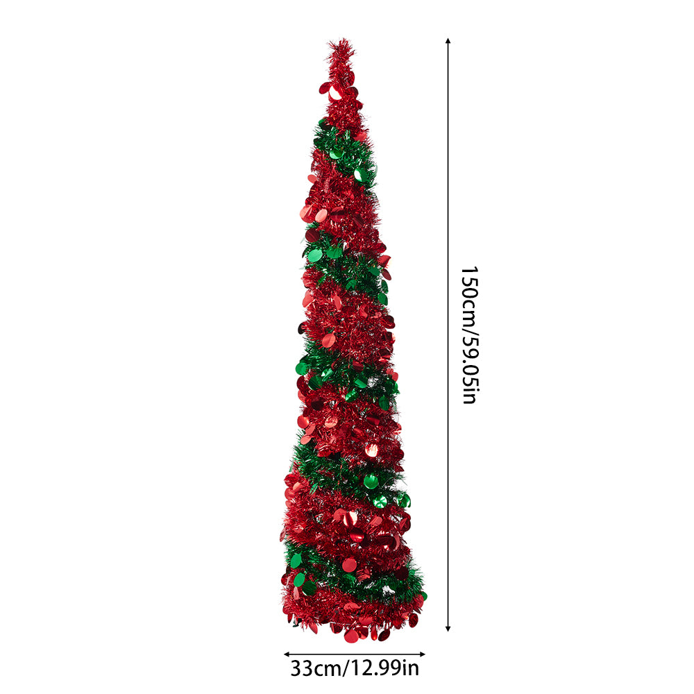 Add a festive touch to your home with this artificial Christmas tree, designed to bring holiday cheer to any room. Its red and white cone-shaped design complements traditional Christmas decor, creating a warm and inviting atmosphere. Covered in shimmering tinsel, the tree glistens beautifully under light, offering a full and textured appearance. The wide base provides stability, making it easy to decorate with lights, ornaments, and small gifts, enhancing the seasonal display with style and charm.