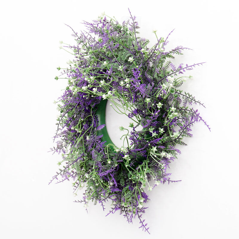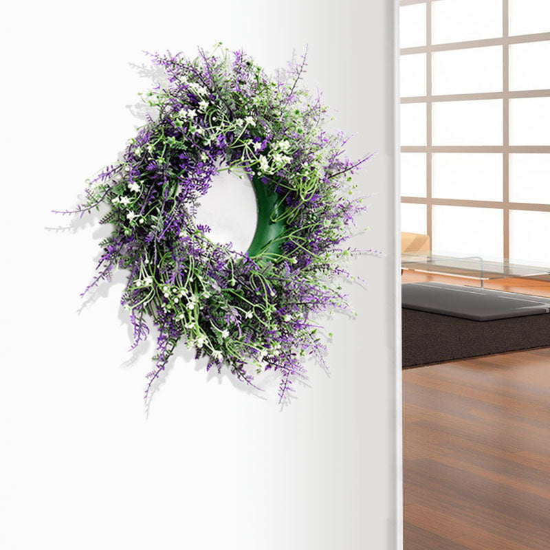 Welcome guests with this lovely artificial lavender wreath from. Made from durable PVC with fine craftsmanship, it stays vibrant in green and purple all year round, adding a pleasant touch to your home. The wreath features lifelike lavender and rich green foliage, offering a look that is both elegant and romantic. A perfect way to bring charm and a sense of nature to your doorway.