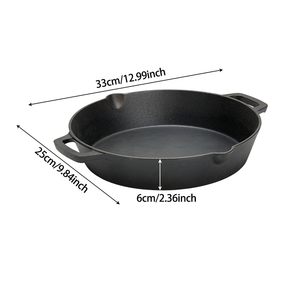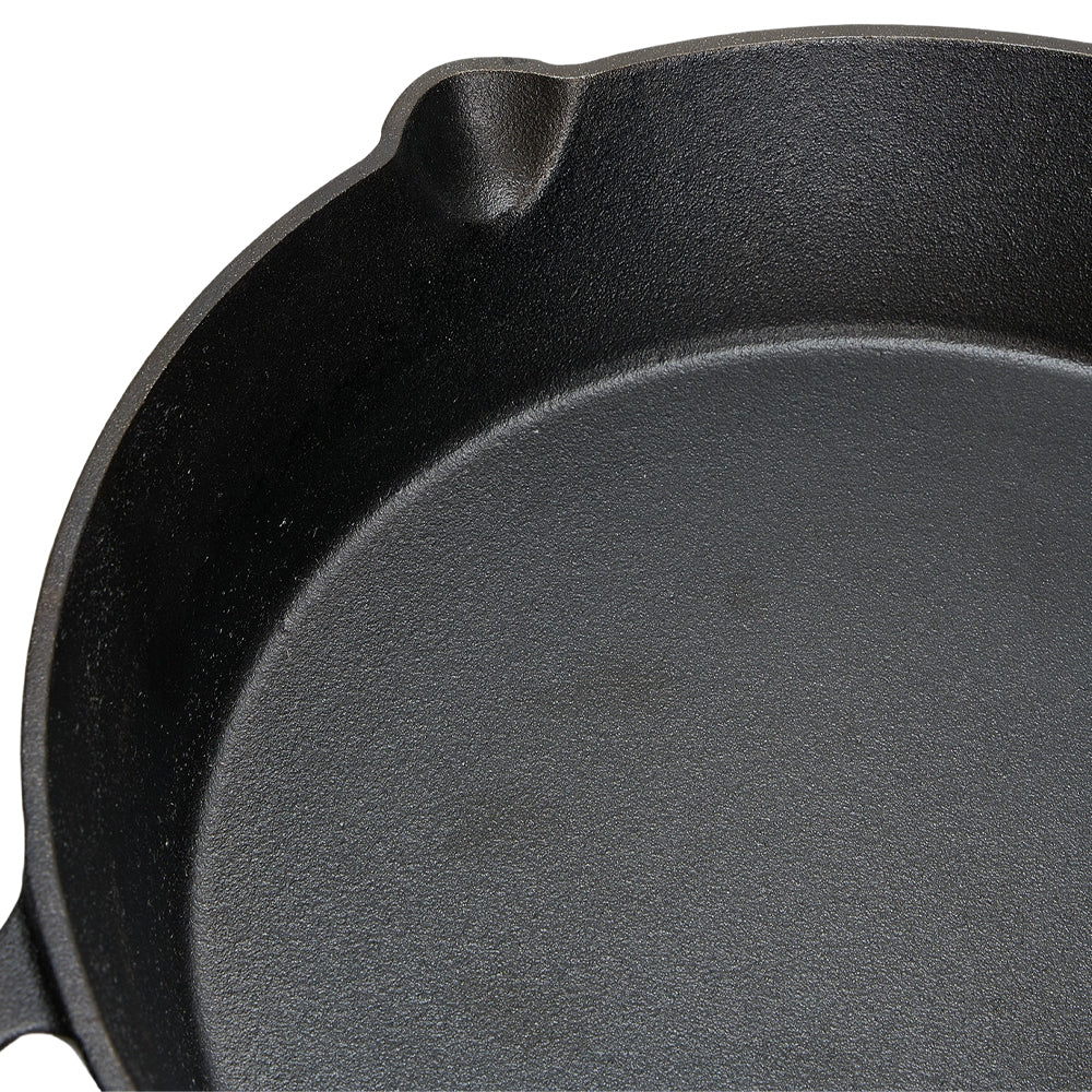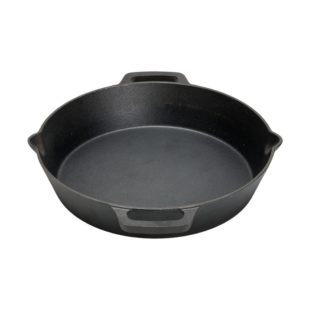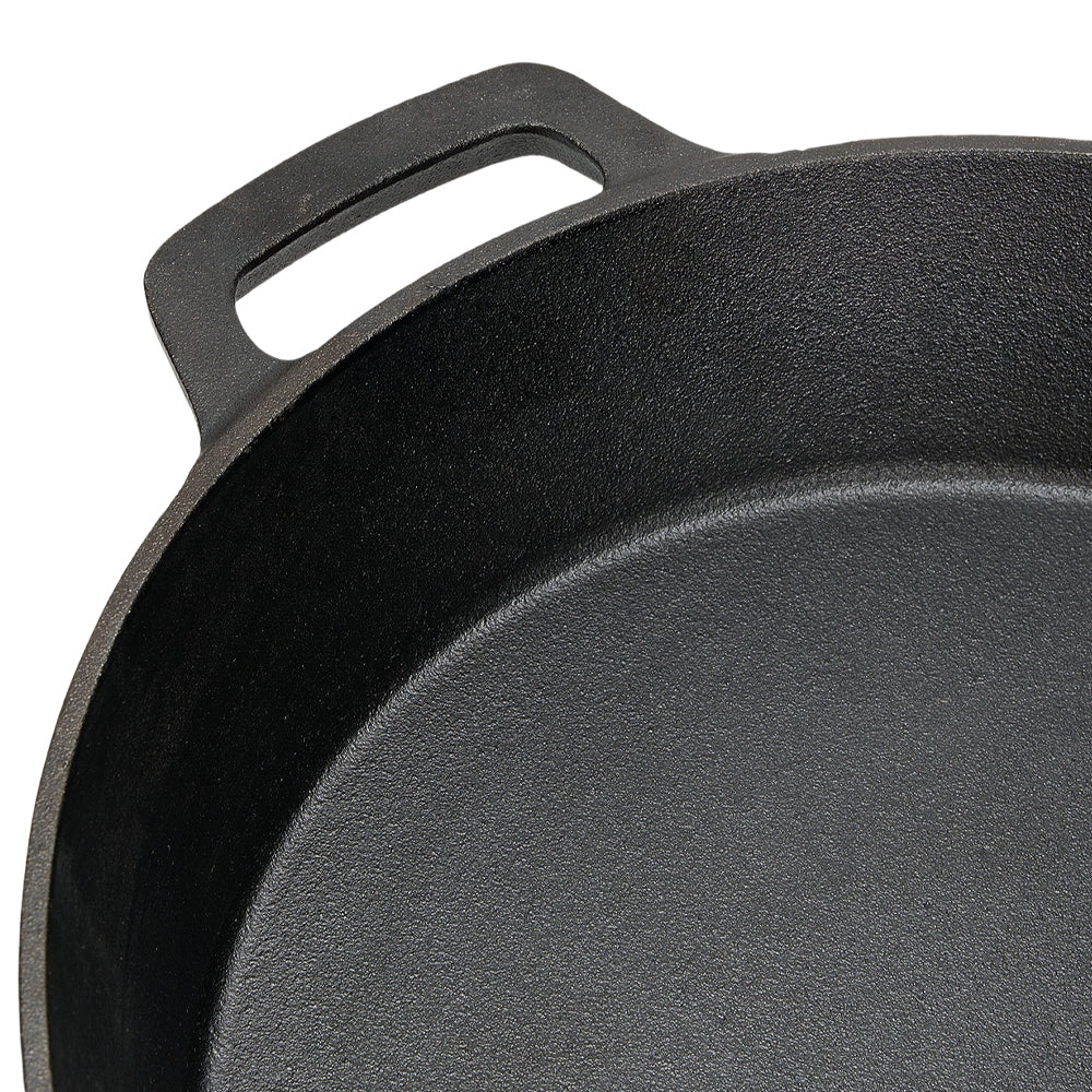 Bring warmth and charm to your kitchen with this round cast iron skillet, the perfect partner for your culinary creations. Its classic circular shape combines elegance with practicality, delivering even heat distribution all around to lock in the true flavours of your ingredients. The generous cooking surface suits a variety of dishes, from frying eggs and searing steaks to baking pancakes and more. Thanks to cast ironâ??s excellent heat retention, it maintains a steady temperature for perfectly crisp exteriors and tender, juicy interiors. The uncoated, naturally seasoned surface develops a smooth, natural non-stick finish that improves with every use.