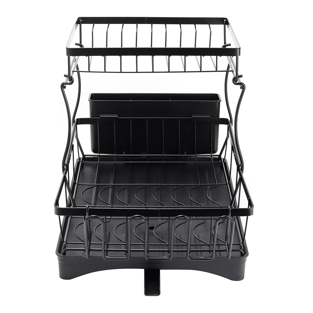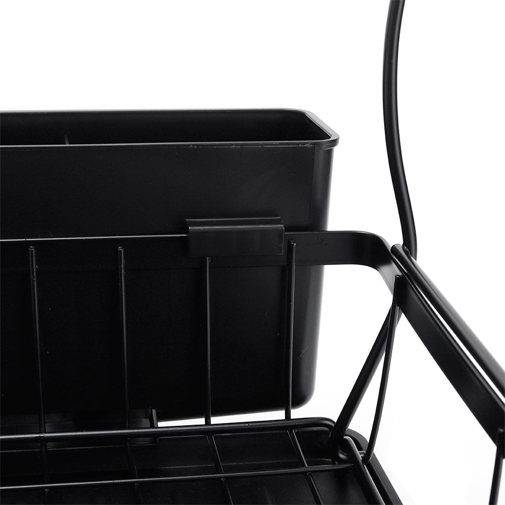 Maximise your kitchen efficiency with this two-tier dish rack from Lifeideas, thoughtfully designed to make washing up less of a chore. Featuring a swivel tray with a funnel-shaped spout, it allows water to drain away automatically, keeping your surfaces dry. The rack includes a detachable glass holder and a three-section utensil holder, both of which can be repositioned to suit your preferences. Crafted from durable, rust-resistant steel, it offers long-lasting performance while keeping your kitchen tidy and well organised.