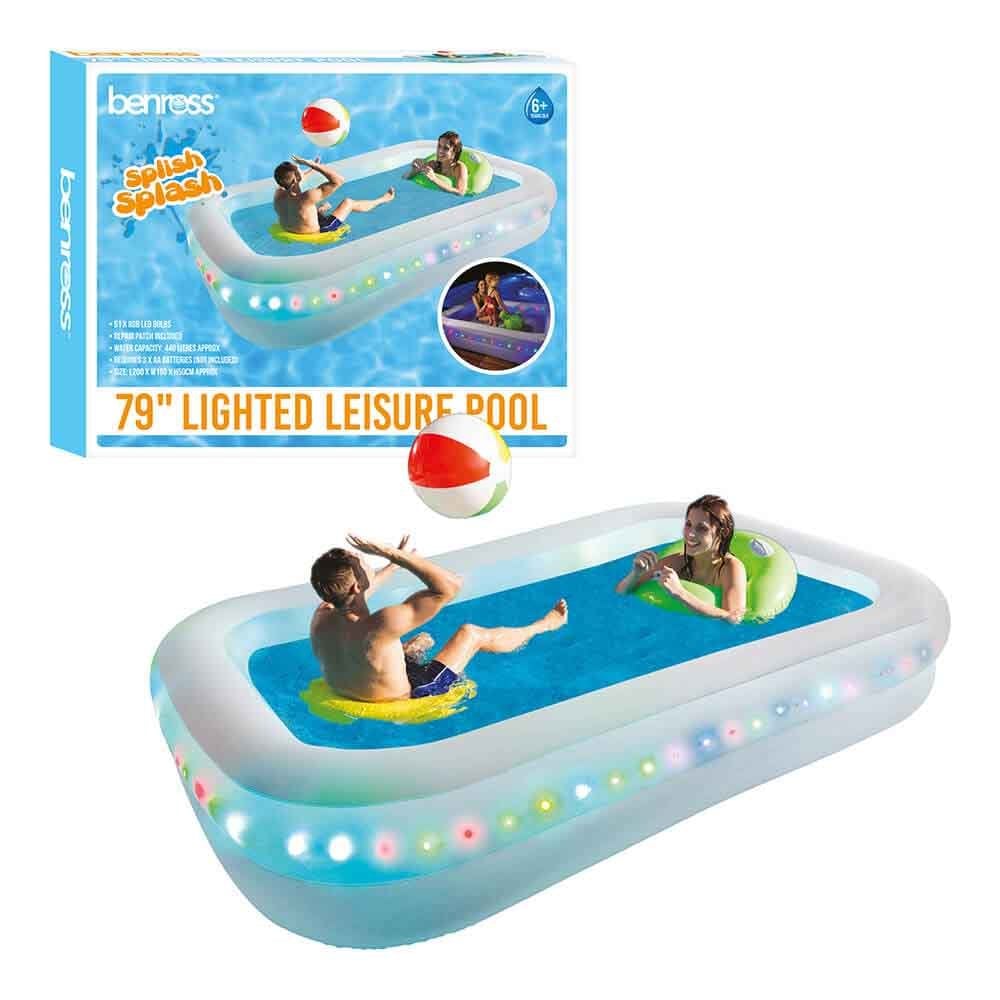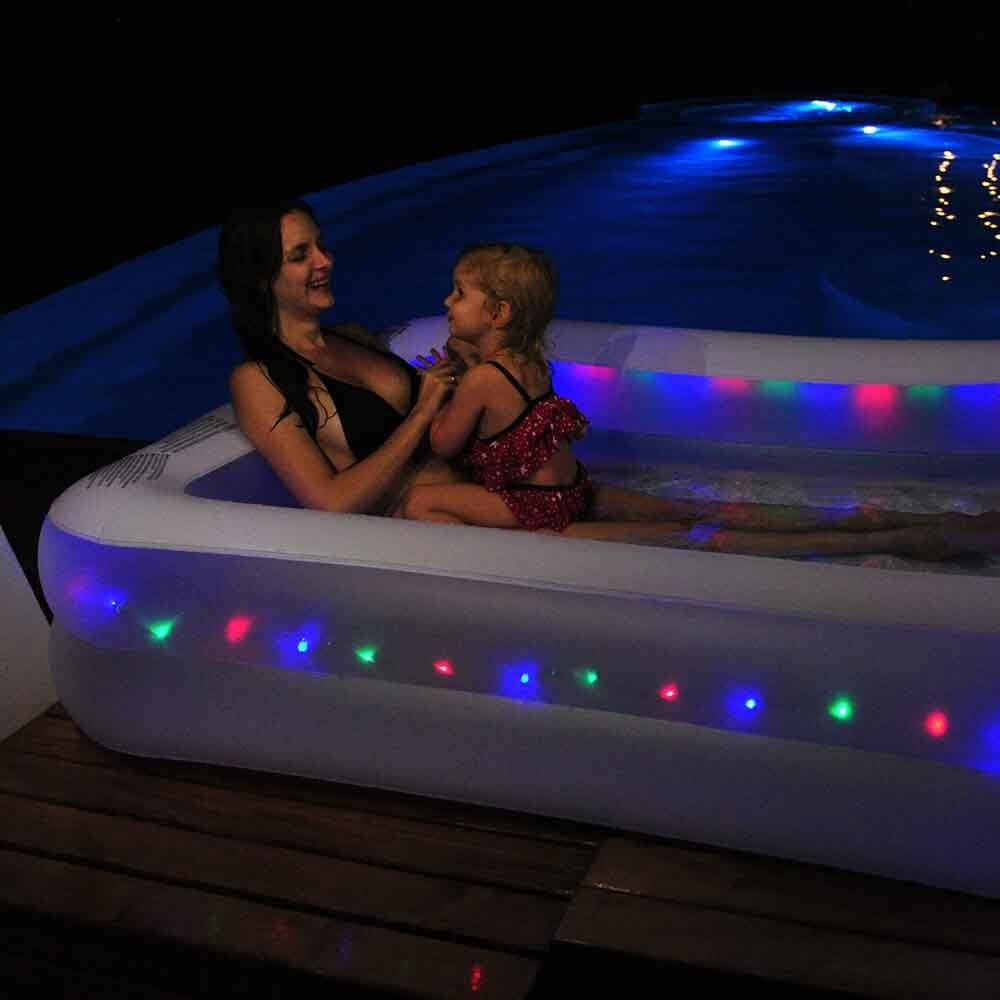 This Led Light up Inflatable Leisure Pool is perfect for the kids and family this summer. It will provide hours of fun during the day and it becomes even more fascinating at night with fun led lighting around the pool. With quick inflation and delfation, you can bring it on holiday with you for cooling down in the hot sun.