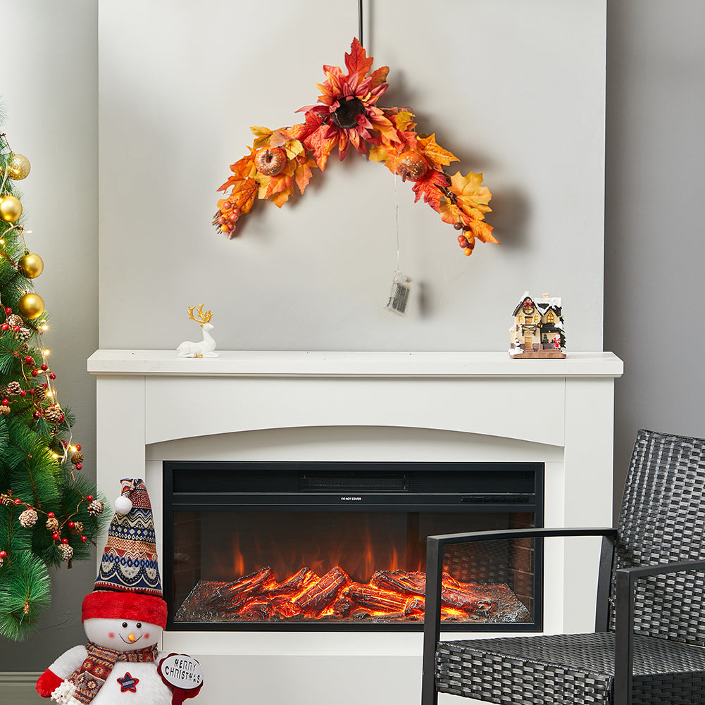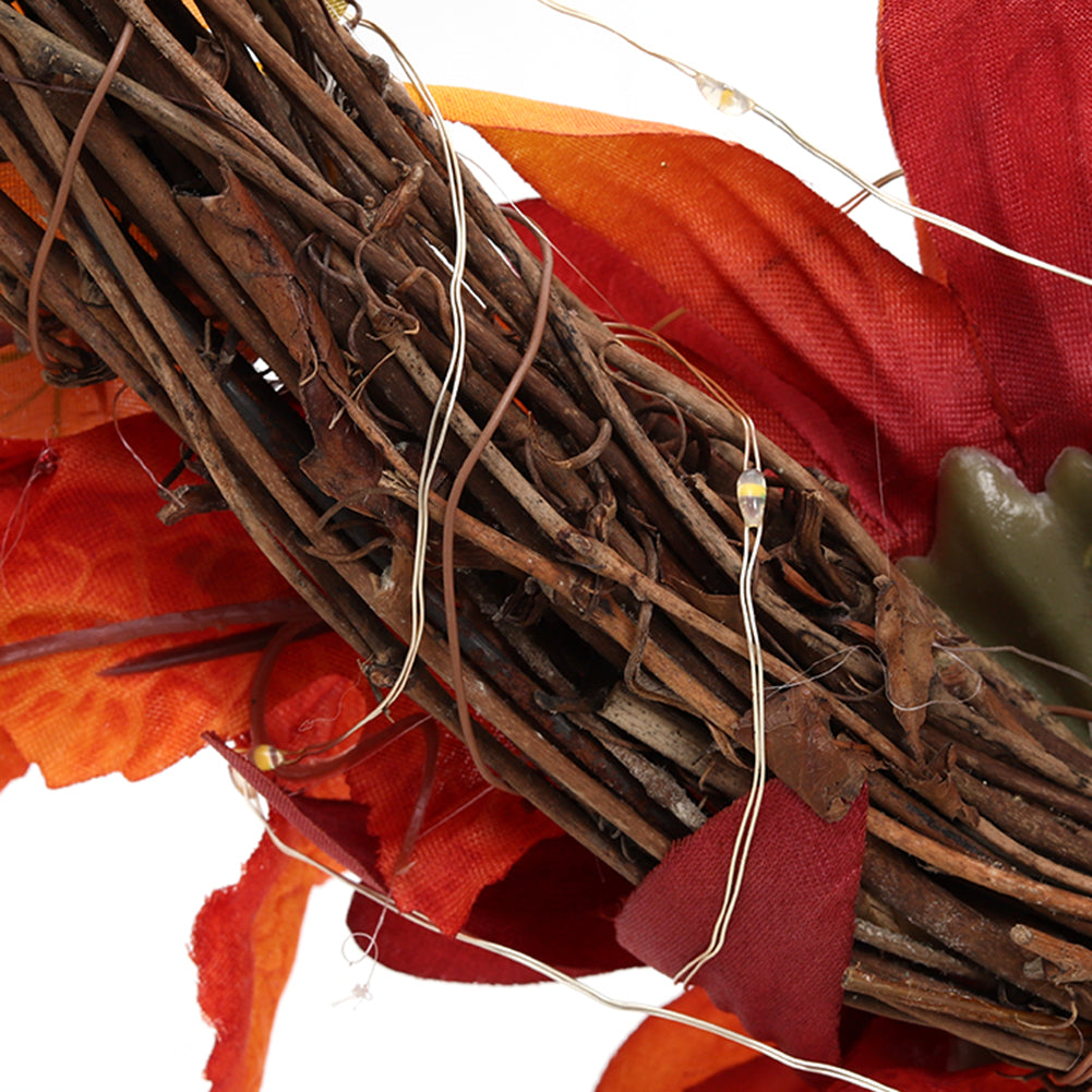Bring festive charm into your home with this artificial sunflower maple leaf swag that captures the beauty of autumn colors. Designed with vivid sunflowers and well-crafted pumpkins, it offers a realistic appearance that lasts longer than natural decor. The lightweight design makes it easy to hang on your front door, wall, or mantel and convenient to store. Equipped with LED lights, it glows beautifully at night to enhance the seasonal atmosphere. This decorative swag is an ideal choice to celebrate festivals and share warm moments with family and friends.