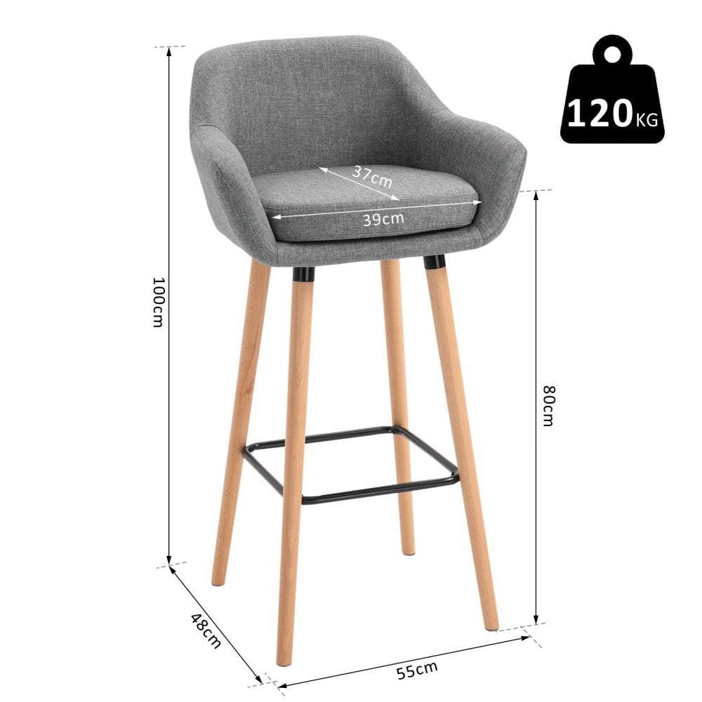 Let modern elegance take the forefront in your home seating, thanks to this set of two bar stools from . Using metal for the chair frame, each seat is crafted into a wide tub design, giving you plenty of room to sit, with deep and plush cushioning all over for prolonged comfort, paired with the high backrests and mid-rise armrests for support. Grey linen upholstery wraps around each seat, allowing your skin to breathe naturally whilst giving it a subtly sophisticated look which is easy to clean. An 80cm clearway from the ground make these chairs ideal for pairing with higher surfaces, with the solid wooden legs providing strength and support as you sit, with a foot rest to finish so your legs don't dangle.