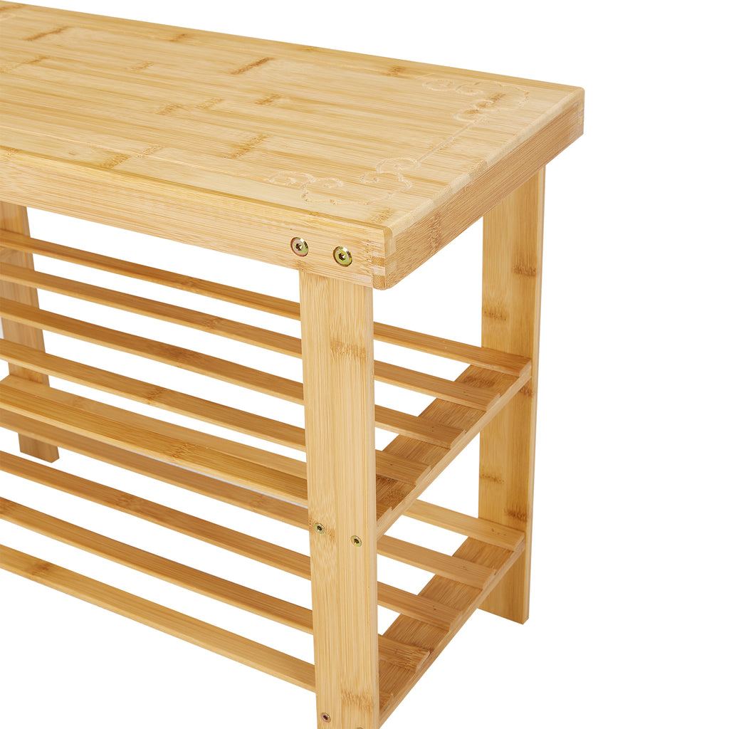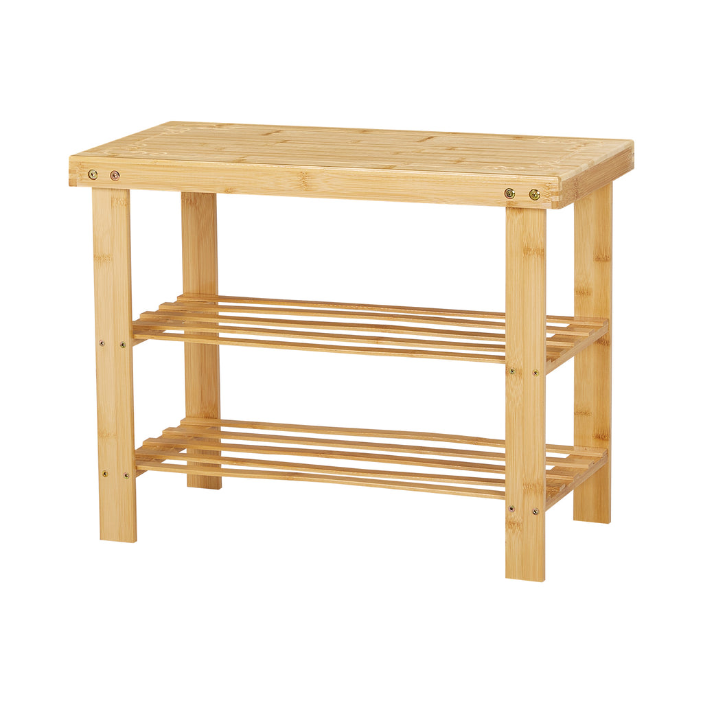 Livingandhome 2-Tier Bamboo Shoe Bench Shoe Rack Storage Organizer