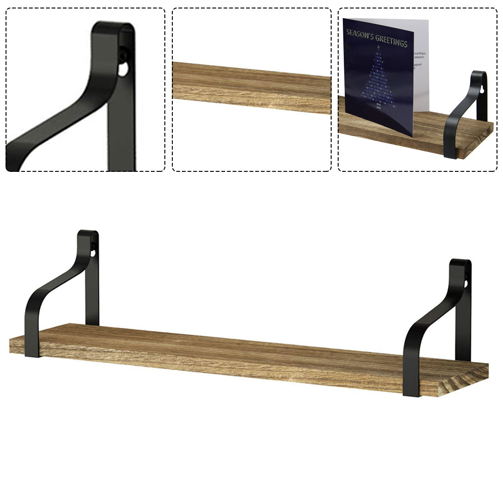 Livingandhome 3Pcs Rustic Metal Wood Floating Shelf Brackets