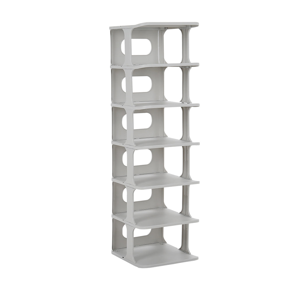Say goodbye to messy shoes with this six-tier open shoe rack from Livingandhome. It keeps your footwear neatly organised, making it easy to find the pair you need and simplifying your morning routine. Made from lightweight plastic, this freestanding rack is versatile enough to double as a display for items such as books, CDs or ornaments, adding practicality and style to any space.