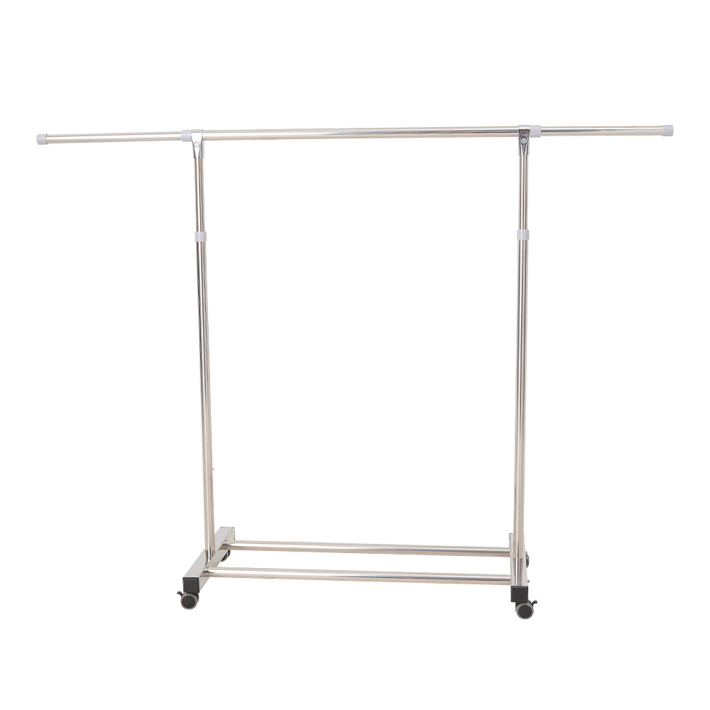 Livingandhome Adjustable Stainless Steel Single-Rod Clothes Drying Rack with Wheels